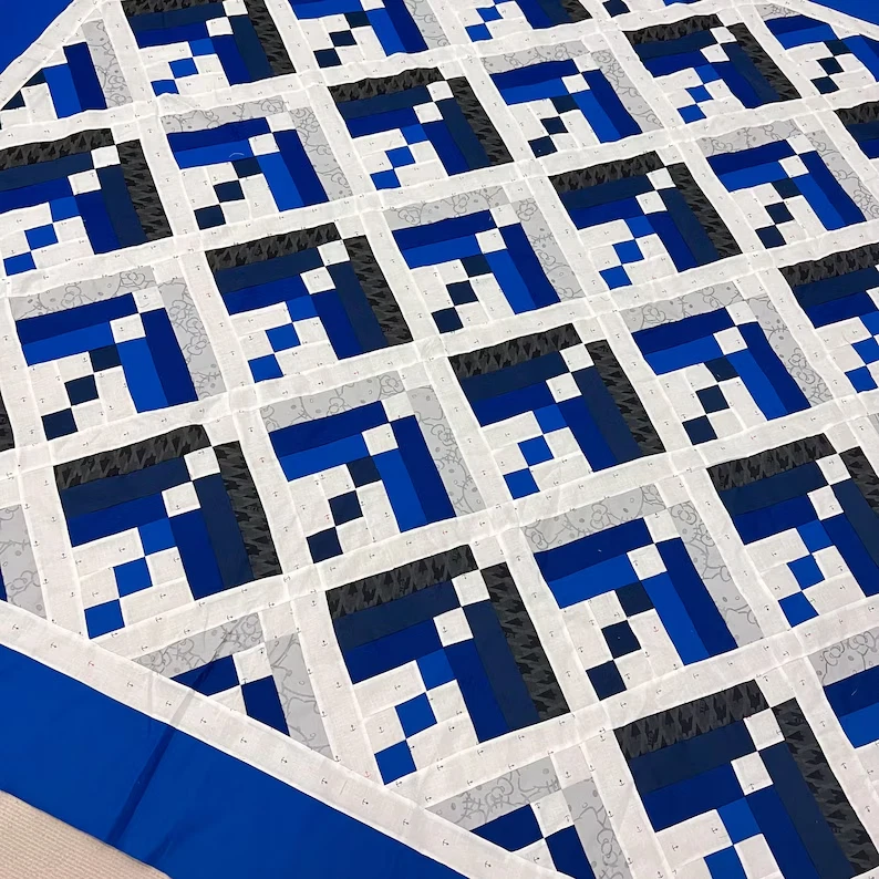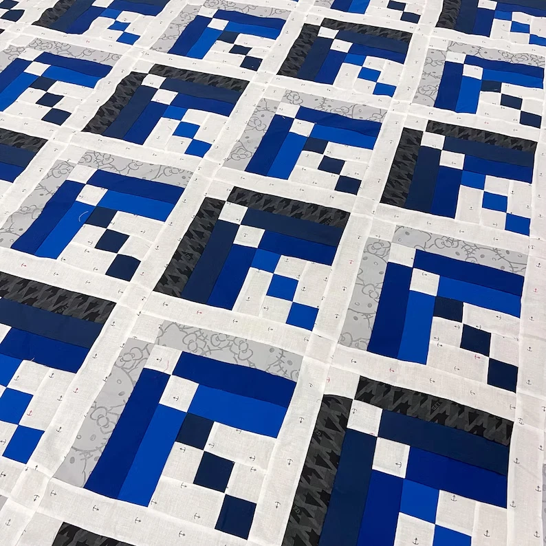 Technique: Patchwork Brand: Handmade Pattern: Log Cabin Dominant Color: Blue
