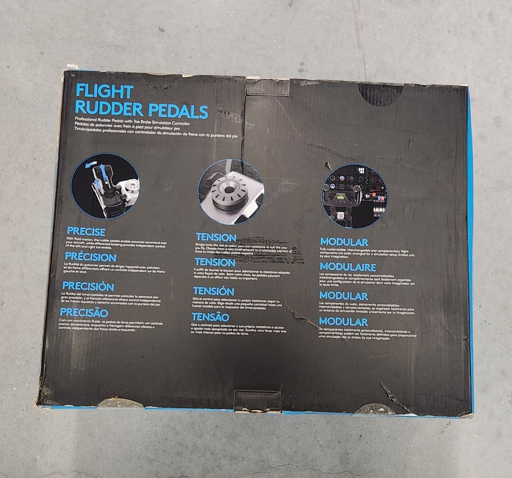 NEVER USED IT'S BRAND NEW IN A BOX, MY KID JUST OPEN THE BOX. Logitech G Pro Flight Rudder Pedals are a flight simulation accessory designed to enhance your virtual flying experience. They allow you to control the rudder and toe brakes of your aircraft with your feet, just like a real pilot. These pedals feature adjustable tension, allowing you to customize the resistance to suit your flying style. The footrests are also adjustable and include non-slip materials for stability.