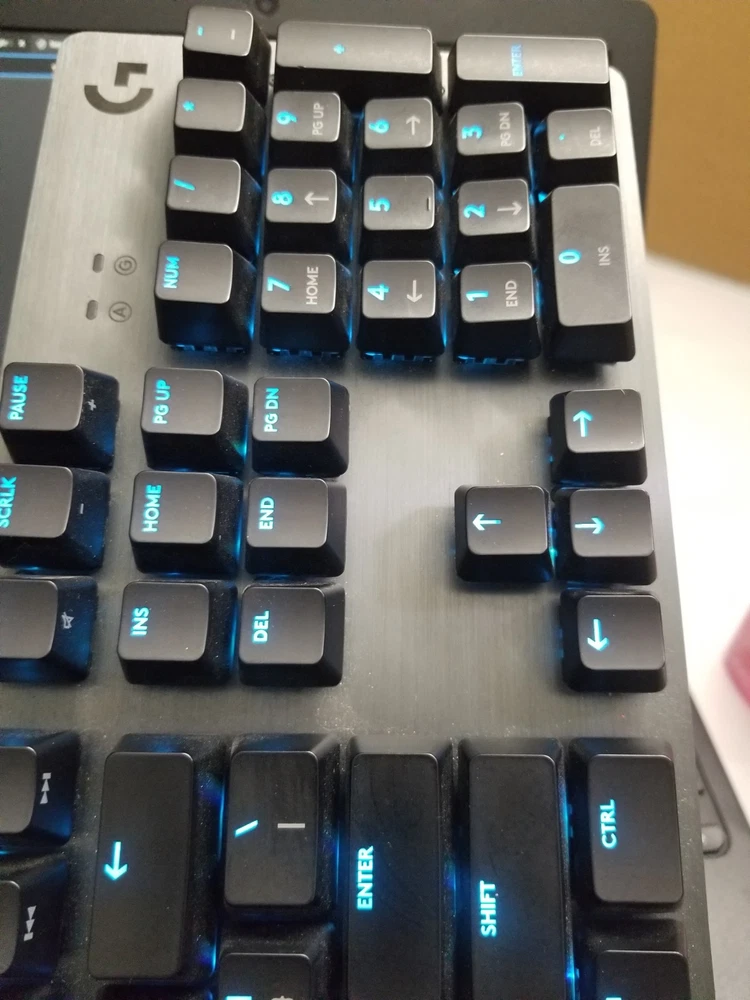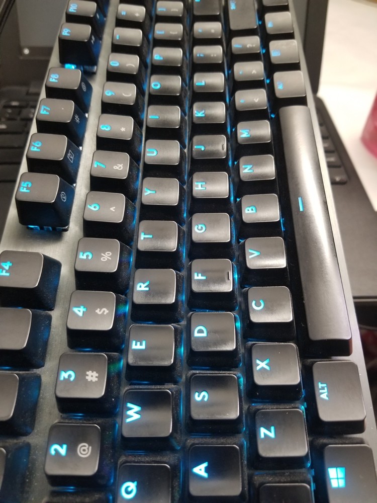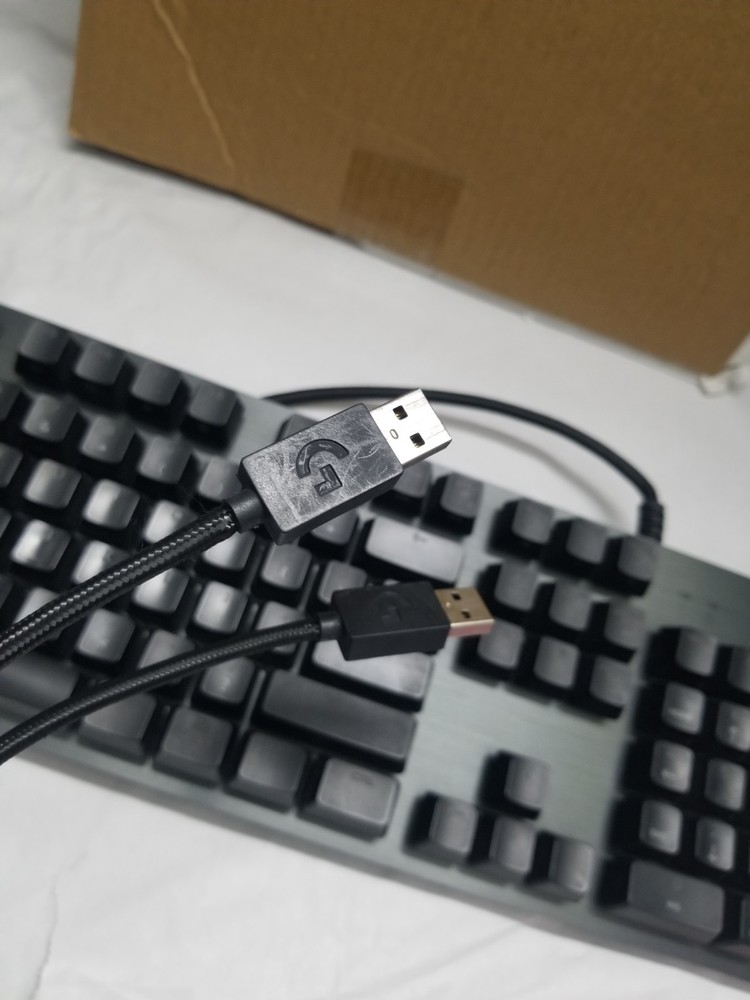 Preowned item. Great keyboard for any enthusiast. Great sound on clicks. Lights up. Carbon overlay. No box.