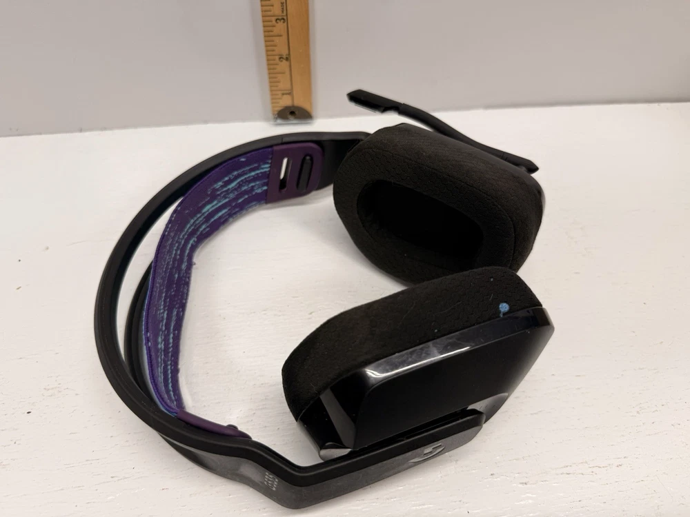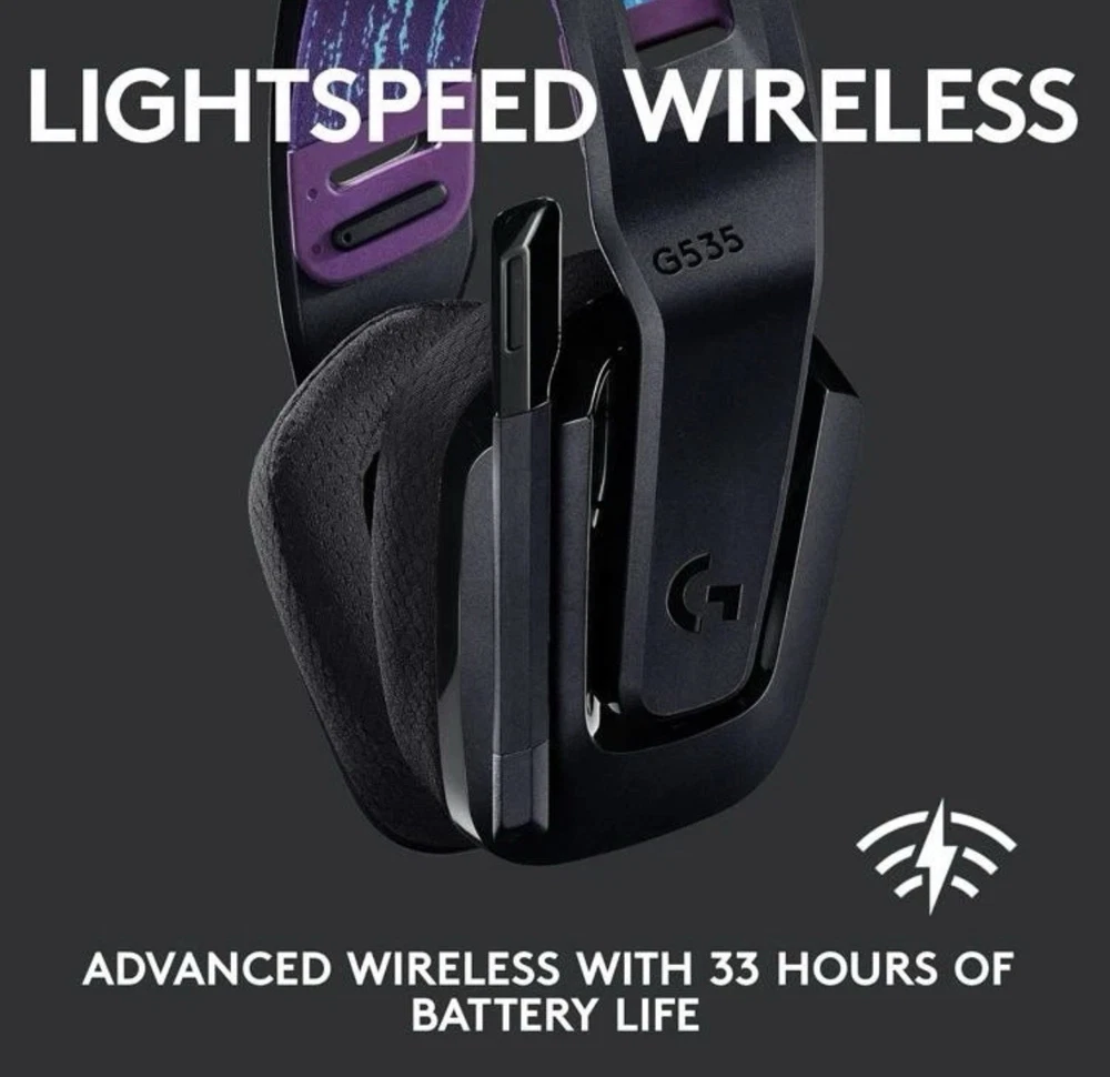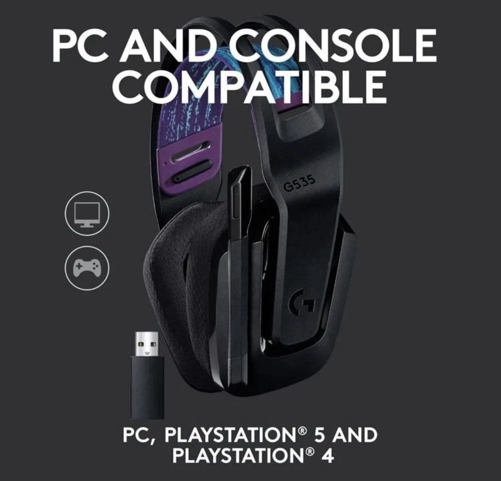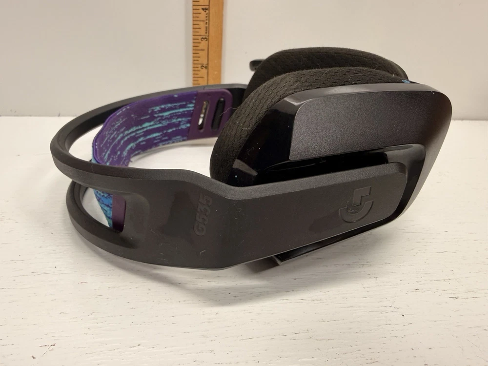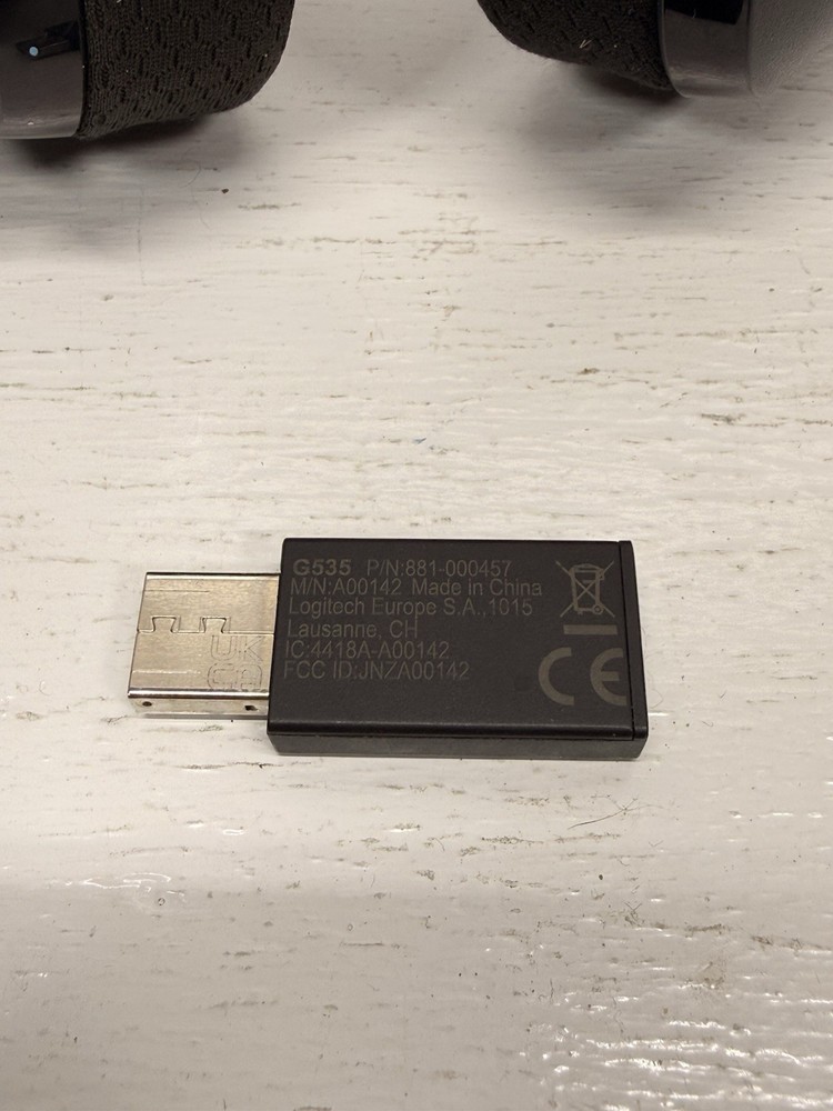 Logitech G535 Lightspeed Wireless Gaming Headset in good working condition. Headset has been tested and functions properly. Includes the original USB wireless receiver (dongle) shown in photos. Black headset with cloth ear pads and adjustable headband. Ear pads show normal cosmetic wear from use. Headband fabric shows light wear but remains fully functional. Microphone arm moves freely and works as intended. No charging cable included. Model information is visible on the USB receiver and matches the G535 series. Please review all photos closely for condition details and what is included, as only the items shown are included. A solid lightweight wireless headset option for PC gaming using Logitech LIGHTSPEED wireless technology. ⚠️ Please note: Any returns will be subject to a 40% restocking fee.