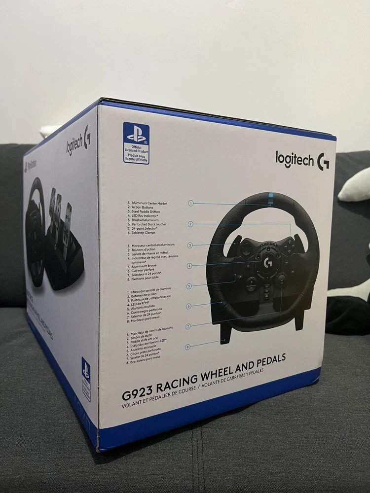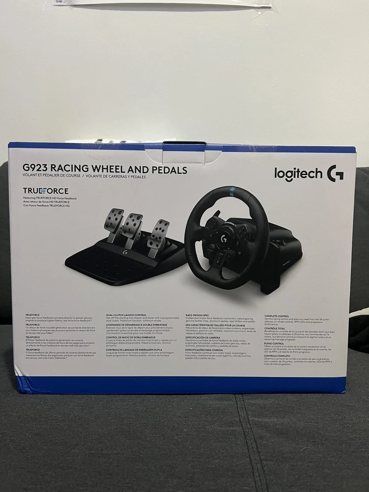 Logitech G923 Racing Wheel and Pedals for PS5, PS4 and PC Logitech G923 Racing Wheel and Pedals for PS5, PS4 and PC Features TRUEFORCE: Unleash your passion for racing with high-definition force feedback. TRUEFORCE connects directly to game engines, processing at 4000 times a second to produce next-gen realism and detail in supported games Programmable dual clutch: Get off the starting line faster with maximum traction and minimum smoke in supported games Control the race: 24-point selector, RPM LEDs, integrated PS4 or PC game controls, and progressive brake spring all help you maintain control of your vehicle at high speeds in supported games Crafted with Premium Materials: refreshed Logitech G design with brushed metal wheel, hand-stitched leather wheel cover, and polished metal pedals Total Wheel Control: Control wheel sensitivity, force feedback levels, and button customization via powerful G HUB Gaming Software for PC. Download at logitechG /downloads Compatible with most racing games on PS5 and PS4 with select titles specially designed for TRUEFORCE. Fast and Free Shipping You're already purchasing the item. Why pay additional for shipping, especially slow shipping? We get your order shipped out within 1-business day and delivered to your doorstep as quickly as possible. Competitive Pricing With our dynamic pricing model, our prices are always competitive. Our prices are some of the lowest that you will find on the internet. Rest assured that you're getting a good deal when purchasing with us. 30-day Money Back Guarantee We are committed to making sure that you leave this transaction satisfied. If you're unhappy with the product for any reason, you may return it back for your money-back or a replacement within 30 days. No questions asked!