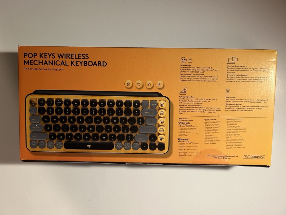 Elevate your typing experience with the Logitech POP Keys Wireless Mechanical Emoji Keyboard in vibrant Blast yellow. Designed for enthusiasts seeking both style and substance, this keyboard features a standard QWERTY layout with a cheerful emoji twist, making it a great addition to any workspace. Its portable, bilayer keyboard mechanism offers a satisfyingly clicky feel without the hassle of wires. With seamless Bluetooth connectivity, this keyboard pairs effortlessly with your devices for hassle-free typing sessions. Multimedia integration ensures that controlling your media is a breeze, while the English keyboard language supports a wide range of users. Whether for work or play, the Logitech POP Keys is a versatile choice for any typing task. Brand New, never opened.