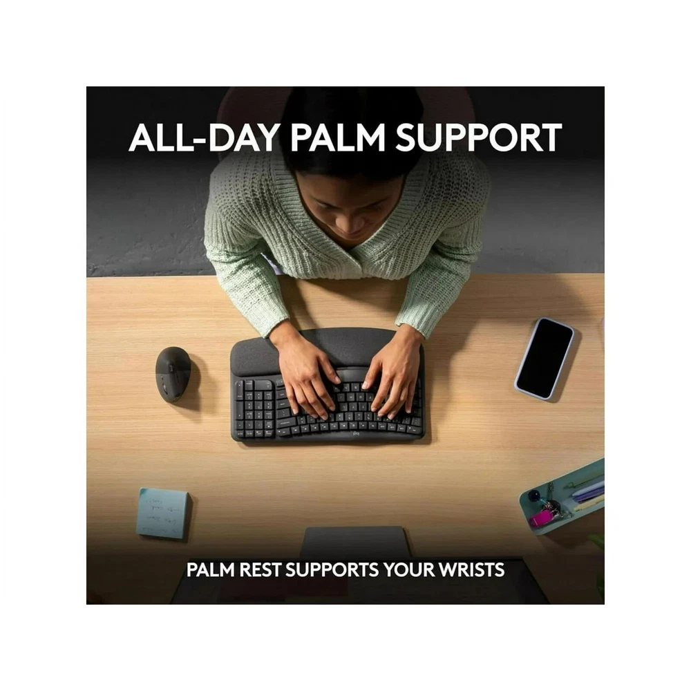 Logitech Wave Keys Wireless Ergonomic Keyboard with Cushioned Palm Rest DESCRIPTION Logitech Wave Keys Wireless Ergonomic Keyboard Windows, Mac, Android Enjoy enhanced typing comfort with the Wave Keys Wireless Ergonomic Keyboard from Logitech . Featuring a compact and wavy design with a built-in palm rest, this off-white colored wireless keyboard conforms to the natural position of your hands, wrists, and forearms to help keep you productive throughout the day. Its compact design helps to relieve shoulder stress by allowing you to keep your mouse closer to the center of your body. The included Logi Bolt USB-A wireless receiver may be simultaneously linked with the Wave Keys keyboard and a compatible mouse. Additionally, you can pair the keyboard with Bluetooth compatible laptops, tablets, and phones and switch between up to three devices at the touch of a button. Use the Logi Options+ App for Windows and macOS to enhance your workflow with custom shortcut keys. This wireless keyboard is designed work for up to three years with two AAA batteries. Feel the Wave Rest your hands, wrists, and upper body in a natural position as you type. With a curved keyframe design, Wave Keys feels instantly familiar and keeps you comfier for as long as you need. More Wrist Support, Less Pressure The soft cushioned palm rest includes three layers of textural foam that provides day long comfort by dispersing pressure. This keyboard also has built-in legs that provide a 4° tilt. Compact Keys The Wave Keys' compact frame allows you to bring your mouse closer to your body, placing your shoulder in a more natural position while using your mouse. A Personalized Workflow Customize your Wave Keys experience using the Logi Options+ App to save time and keep your work flowing. Easy Connection and Long Life Connect Wave Keys wireless ergonomic keyboard using Bluetooth wireless technology or the included Logi Bolt receiver. Enjoy up to 3 years' battery life with included AAA batteries. Multi-Device Switching The Wave Keys comes with a dual printed layout for Windows and Mac, and is multi-OS compatible. Quickly switch between your computer, tablet, or phone using the Easy-Switch keys. Sustainable Design The plastic parts in the Waves Keys keyboard include 46% certified post-consumer recycled plastic and is certified carbon neutral. Its paper packaging comes from FSC-certified forests and other controlled sources. ITEM SPECIFICS Brand: Logitech Type: Ergonomic Color: Graphite Item Height: 14.800 Model: Logitech Wave Keys Connectivity: Wireless, Bluetooth Features: Wrist Rest MPN: 920-011898 Item Length: 8.620 Item Width: 1.180 Keyboard Language: English PAYMENT Prompt payment is mandatory for all Buy It Now purchases. Accepted Payment Methods: Credit/Debit Cards: We accept major credit and debit cards including Visa, Mastercard, and Discover. Mobile Payments: Enjoy quick and secure payment options with Venmo, Apple Pay, and Google Pay. Online Payments: We also accept payments through PayPal, providing a reliable option for secure online transactions. SHIPPING Same-day shipping is available for orders placed before 3 PM, following payment completion. Buyers will receive a shipment notification with a tracking number. Orders made on weekends will ship on Monday. Items are shipped via USPS, FedEx, or UPS, depending on location and package weight. RETURN 30-Day Return Policy We want you to be completely satisfied with your purchase. If for any reason you are not happy with your item, you can return it within 30 days of receiving it for a full refund. ABOUT US We are a team of e-commerce experts who believe in making shopping a delightful experience. Our extensive knowledge of market trends and consumer preferences drives us to offer you a wide selection of products, from everyday essentials to unique finds, all sourced with care and attention to detail at prices you can truly afford. FEEDBACK Logitech Wave Keys Wireless Ergonomic Keyboard Windows, Mac, Android $36.95 Logitech - ERGO M575 Wireless Trackball Mouse Bluetooth & USB Connectivity $31.95 TP-Link AC1200 WiFi Router (Archer A54) - Dual Band Wireless Internet Router $24.95 Razer Basilisk V3 X HyperSpeed Customizable Wireless Gaming Mouse - Wireless $37.99 TP-Link EAP225-Outdoor | AC1200 Wireless Gigabit MU-MIMO Outdoor Access Point $43.95 Syba SI-PEX40137 8 Port Non-RAID SATA III PCI-e x4 Controller Card Dual SFF-8087 $89.95 SteelSeries - Aerox 5 Ultra Honeycomb Wireless RGB Gaming Mouse 18000 DPI *READ* $42.99 ARRIS SURFboard SBG7600AC2 DOCSIS 3.0 Cable Modem & AC2350 Wi-Fi Router $74.99 Add suggested items to your listings - Check it out on 3Dsellers.com