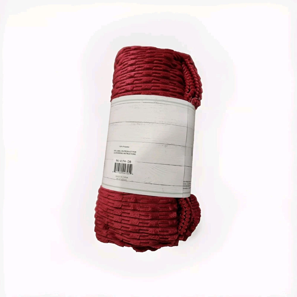 This is a luxurious Loire Home throw blanket in an oversized 50 x 70 inch size. Made from soft velvet material with a textured design, it is perfect for adding warmth and style to any bedroom decor.