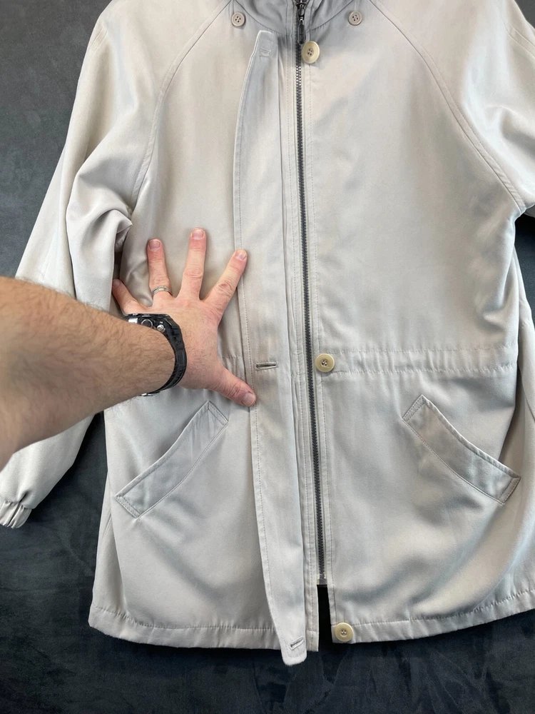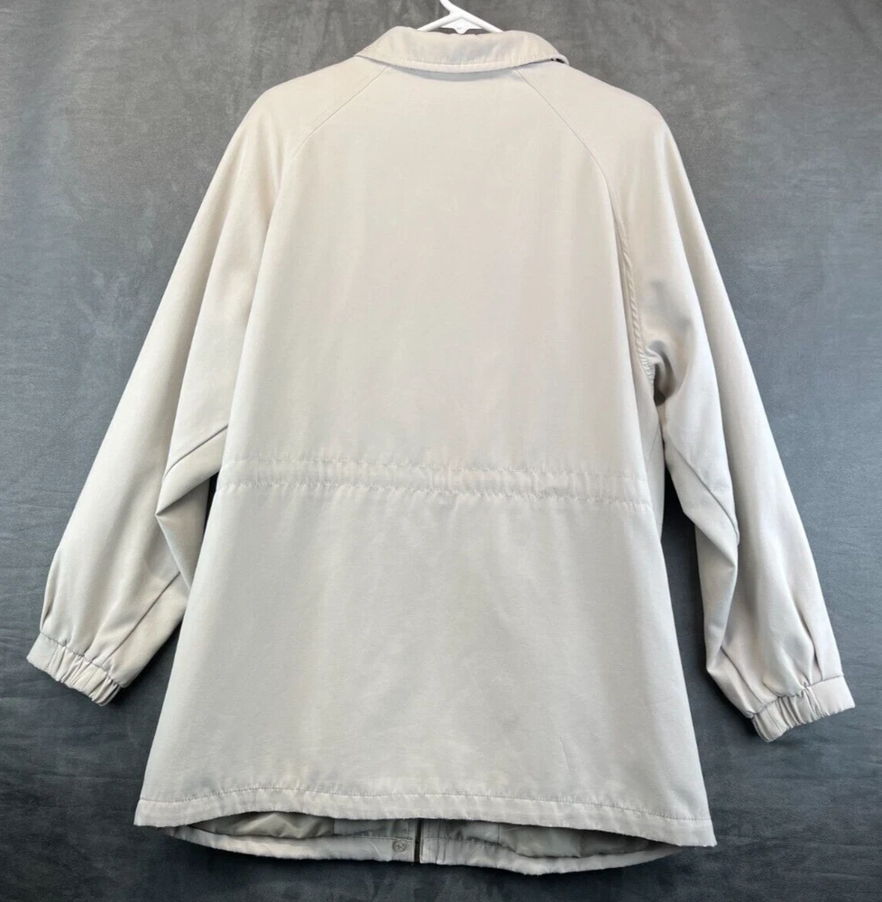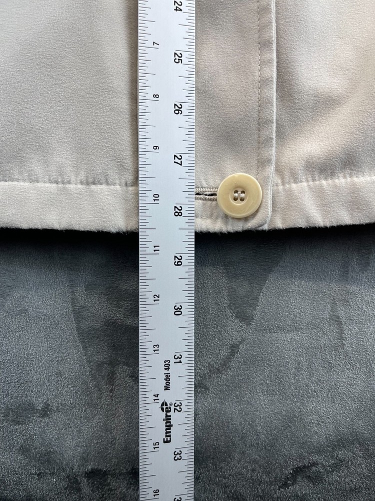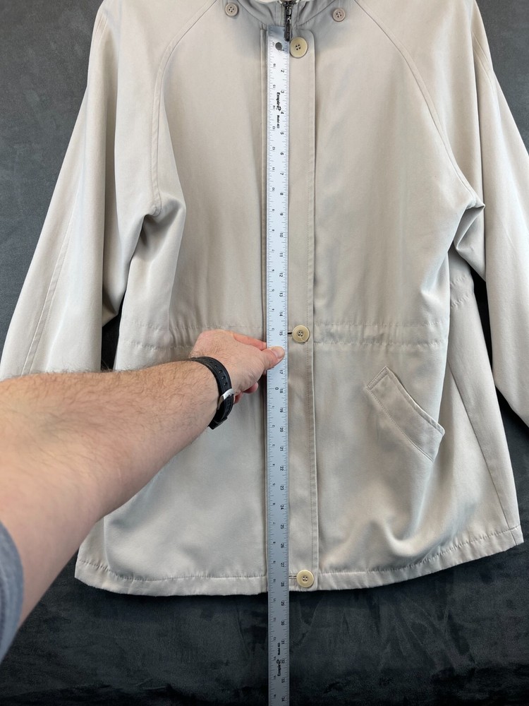 This London Fog 3/4 Length Jacket for men in size Large is designed in a beige color with a full zip closure. Made of polyester softshell fabric with a nylon lining, it features a spread collar and is water-resistant. The jacket also includes button and zipper accents, suitable for travel, parties, formal events, or business occasions in the fall, winter, or spring seasons. Very good preowned condition with normal preowned wear. Please see all photos; specifically for measurements. For clothing specifically, see photos for all measurements and/or any issues if applicable. Pay close attention to the measurements as the size of the garment may quite possibly be different than the actual measurement(s) due to washing, shrinkage, or stretching as these are used clothes. The size in the title is the size on the tag of the garment. See photos for measurements of actual measurements as they may differ. ALWAYS CHECK THE MEASUREMENTS IN THE PHOTOS. This will remove any questions on measurements as well as always cover the possibility of human error in the listing(s) in the case of a typo or oversight. All clothing and shoes have been washed/cleaned, and are cleaned and stored in a smoke free environment. However, please keep in mind that these are preowned items and there is always a possibility of there being preowned dirt, dust, or stray hairs present. I do my best to clean these items with hair collecting products in the dryer after being washed, and by hand with shoes. If shoe trees appear in the photos, they are for photography purposes only to illustrate how the shoes look filled out, and are not included. I am available for questions. I accept or negotiate reasonable offers. Have an amazing day. Thank you.
