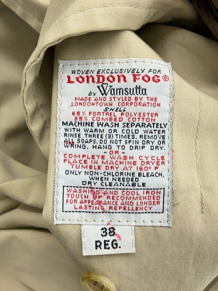 Item Title London Fog 70S/Made In Usa/Trench Coat With Liner/38/Cotton/Beg 3944 Payment Supports managed payments Please pay within 5 days after auction is finished. About Us We are located in Japan. It's our pleasure to make you happy by proposing our recommend item. If you have any questions or request about items, please feel free to ask us. International Buyers - Please Note: -Import duties, taxes, and charges are not included in the item price or shipping charges. These charges are the buyer's responsibility. -Please check with your country's customs office to determine what these additional costs will be prior to bidding/buying. -These charges are normally collected by the delivering freight (shipping) company or when you pick the item up - do not confuse them for additional shipping charges. -We do not mark merchandise values below value or mark items as - gifts - The US and International government regulations prohibit such behavior. Thank you for your understanding.