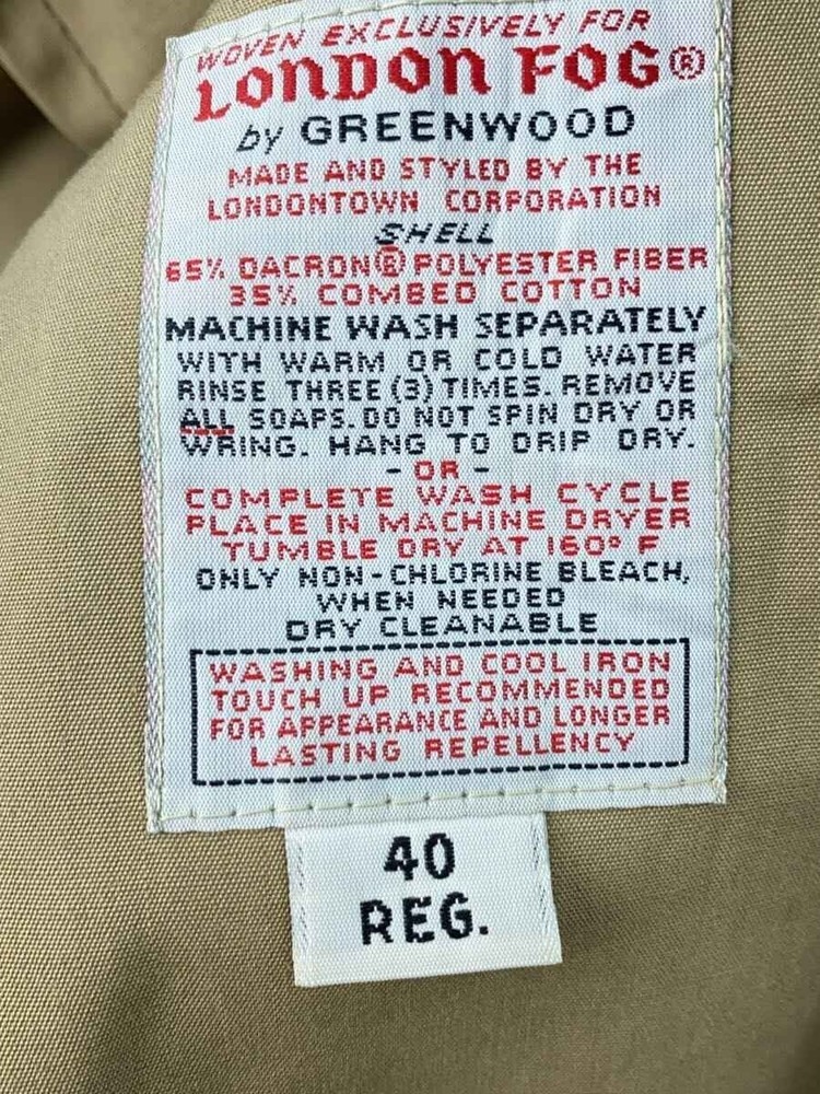 Item Title London Fog Trench Coat/40/Polyester 3944 Payment Supports managed payments Please pay within 5 days after auction is finished. About Us We are located in Japan. It's our pleasure to make you happy by proposing our recommend item. If you have any questions or request about items, please feel free to ask us. International Buyers - Please Note: -Import duties, taxes, and charges are not included in the item price or shipping charges. These charges are the buyer's responsibility. -Please check with your country's customs office to determine what these additional costs will be prior to bidding/buying. -These charges are normally collected by the delivering freight (shipping) company or when you pick the item up - do not confuse them for additional shipping charges. -We do not mark merchandise values below value or mark items as - gifts - The US and International government regulations prohibit such behavior. Thank you for your understanding.