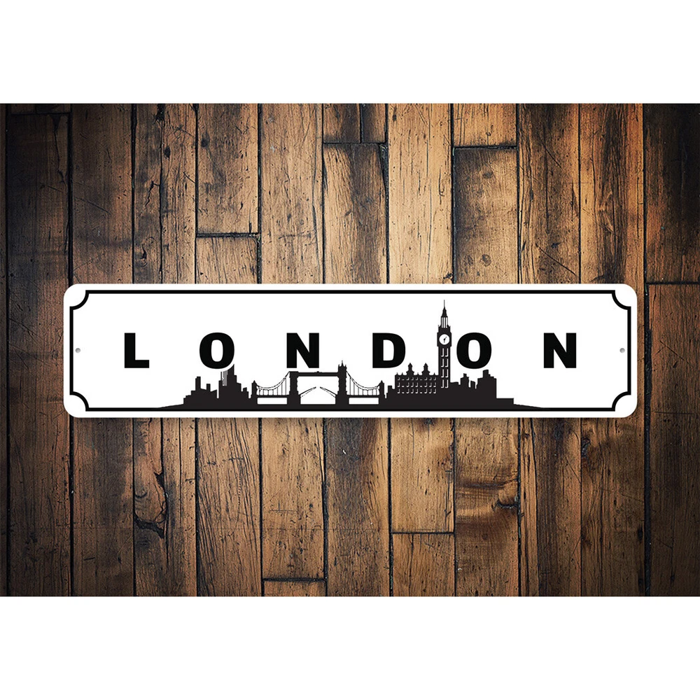 The Lizton Sign Shop Product Description London Skyline Metal Sign **there may be slight variations in color and text spacing, however your sign will be very similar to the image above. Quality Aluminum Street Signs Sign Information Aluminum Brand New Sign Comes with rounded corners and pre-drilled for easy hanging. We use the highest quality materials - 100% USA-made! Great Gift Idea - Our signs truly make a one of a kind gift. Personalize the sign with the text you want to add. Custom text for the sign can be sent to us via email. A BRAND NEW SIGN!! All of our street signs are made of premium materials. The sign itself is made of aluminum and will never rust providing years of enjoyment indoors and outdoors. No Cheap plastic!! The Lizton Sign Shop specializes in quality personalized custom aluminum signs for any occasion. These make the perfect sign for any man cave, office, basement, garage, college dorm, kids bedroom, game room, bar, pub, tavern or countless other places. *Colors may vary slightly from one computer screen to the next but the image should be very close. All content and designs are subject to copyright and may not be reproduced in any form. Payment Methods We would prefer payment to be made through paypal but we also accept all major credit cards. If you select the credit card option please contact us after you make your purchase and we can walk you through the steps to make a secure payment. Return Policies We will accept returns within 30 days of the purchase date. The buyer is responsible for any costs to return the item or items. Returns will only be accepted for items that were damaged in shipping or if we made an error in the manufacturing of your item, i.e. spelling error.