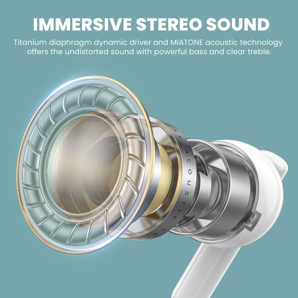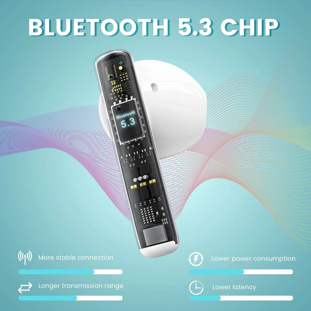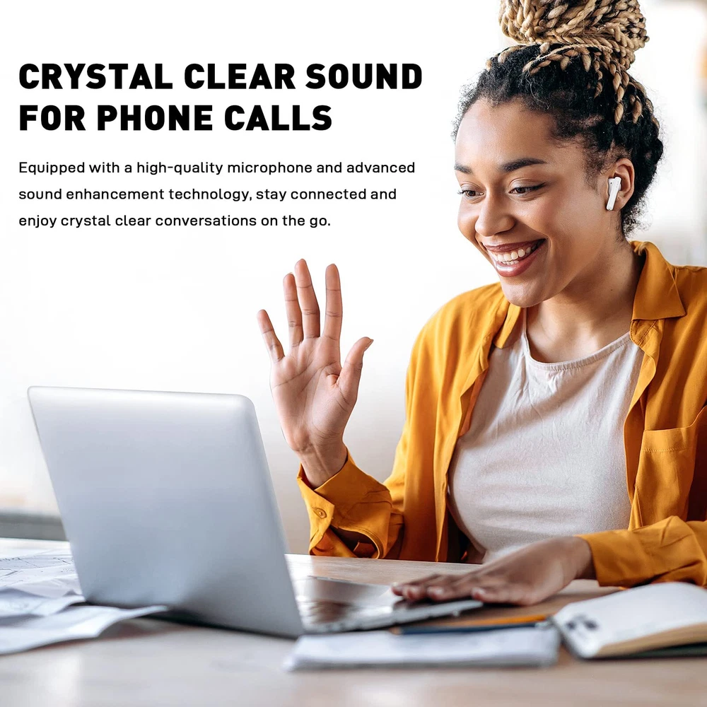 [Impressive Stereo Sound] Experience exceptional sound quality with our Bluetooth earbuds, which deliver impressive stereo sound and clear quality for an unparalleled listening experience. [Simple Touch Control] With easy-to-use touch controls, our Bluetooth earbuds offer a seamless and hassle-free experience, allowing you to control your music and calls effortlessly. [Bluetooth 5.3 Earbuds] Enjoy faster and more stable connections with our Bluetooth V5.3 technology, ensuring uninterrupted streaming and crystal clear sound. [Long Battery Life] Our Bluetooth ear buds provide up to 9 hours of playtime on a single charge, with an additional 50 hours of battery life in the compact charging case, ensuring you can stay connected all day. INTEGRATED MICROPHONE — A built-in microphone precisely captures your voice while you’re on the , taking a FaceTime , or summoning Siri — so you’re always heard loud and clear.