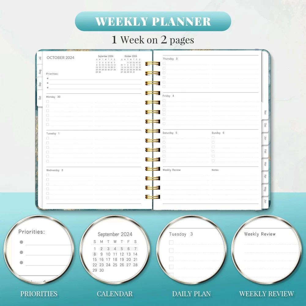 Lonely Oak Planner 2024-2025 Academic Year, A5 Monthly Weekly Planner from JUL.2024 to JUN.2025, Student and Teacher Agenda Planner with Tabs, Elastic Closure and Inner Pocket(GRAY MARBLE) [PLANNER 2024-2025] Academic weekly planner 2024-2025 measures 8.5" x 6.1", covers 12 months from July 2024 to June 2025 with weekly and monthly sections for planning and scheduling, and the monthly tabs for easy navigation between months. [MONTHLY PLANNER] Each monthly page provide a full monthly overview with daily blocks for your long-term monthly planning. The notes section is designed for your monthly priorities and review. [WEEKLY PLANNER] The weekly planner, with a clear weekly overview of 1 week on 2 pages, provide ample space for detailed daily planning, allowing you to track your appointments, reminders and to-do lists. Effectively help you prioritize your daily tasks and focus your energy on what truly matters. [FUNCTIONAL DETAILS] 8.5" x 6.1" A5 Planner Pages| Elastic Closure |Strong Twin-Wire Binding | Inner Pocket|12 Monthly Tabs | 2024-2025 Yearly Overview | Contacts Pages | My Vision & Mind Map | Overview of 12 Monthly Planners | Notes [DELICATE DESIGN] This 2024-2025 academic planner features unique rendered colors. Gorgeous appearance accompany your plans for the entire year adding richness to your memories. The padded cover and sturdy twin wire binding will keep the planner for a long time, your efforts and progress will be recorded! [PLANNER 2024-2025] Academic weekly planner 2024-2025 measures 8.5" x 6.1", covers 12 months from July 2024 to June 2025 with weekly and monthly sections for planning and scheduling, and the monthly tabs for easy navigation between months. [MONTHLY PLANNER] Each monthly page provide a full monthly overview with daily blocks for your long-term monthly planning. The notes section is designed for your monthly priorities and review. [WEEKLY PLANNER] The weekly planner, with a clear weekly overview of 1 week on 2 pages, provide ample space for detailed daily planning, allowing you to track your appointments, reminders and to-do lists. Effectively help you prioritize your daily tasks and focus your energy on what truly matters. [FUNCTIONAL DETAILS] 8.5" x 6.1" A5 Planner Pages| Elastic Closure |Strong Twin-Wire Binding | Inner Pocket|12 Monthly Tabs | 2024-2025 Yearly Overview | Contacts Pages | My Vision & Mind Map | Overview of 12 Monthly Planners | Notes [DELICATE DESIGN] This 2024-2025 academic planner features unique rendered colors. Gorgeous appearance accompany your plans for the entire year adding richness to your memories. The padded cover and sturdy twin wire binding will keep the planner for a long time, your efforts and progress will be recorded! Shipping from the USA All of our products are shipped from the USA, ensuring quick delivery to your destination. Payment We offer the following payment methods: PayPal, credit card, bank transfer, and eBay's secure payment system. Free Shipping & Free Returns Shipping within the USA is FREE. Additionally, any return is absolutely free for you. Risk-Free Purchase You have the option to return an item within 30 days without any justification. We cover the return shipping costs! Fast Shipping We ship immediately upon receipt of payment. Generally, the package is delivered within 2-3 days in the USA. If it takes longer, we will contact you. Quality and Costs Made in Europe, USA, China No customs fees or additional charges Total satisfaction guarantee Invoice with declared VAT available upon request in .pdf format Feedback Your feedback is very important to us. After you pay for your purchase, you will automatically receive positive feedback from us.