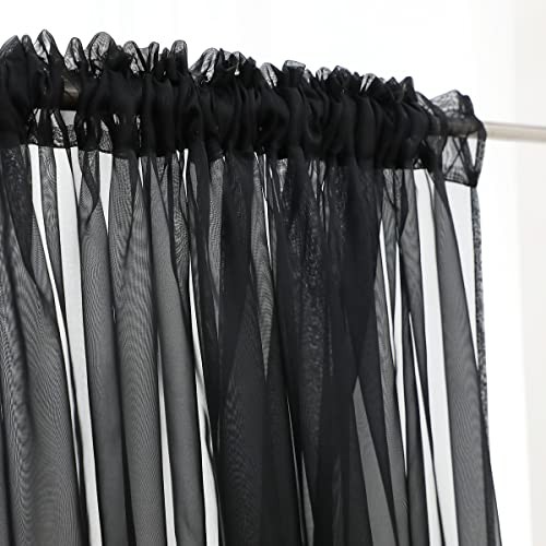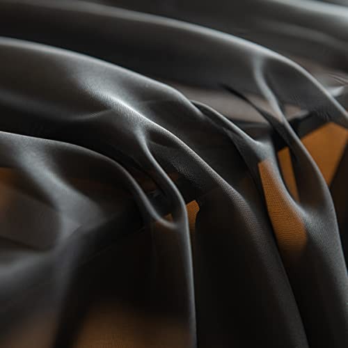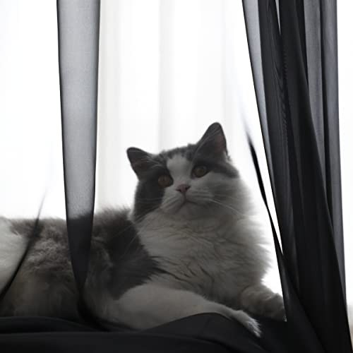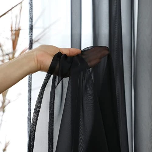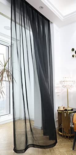 Long 108-Inch Black Sheer Voile Window Curtains 2 Panels Light Filtering