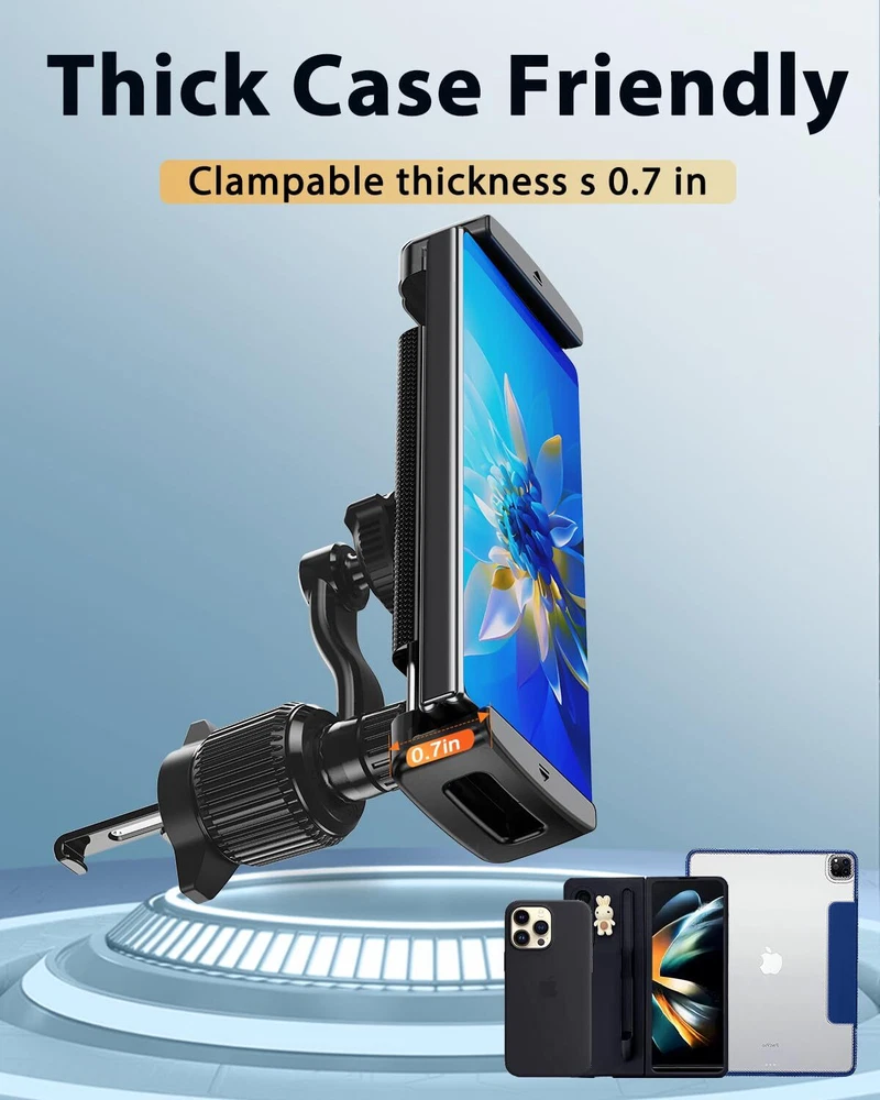 DICMKY Long Arm Car Phone Mount for Samsung Galaxy Z Fold 6 5 4 3 - Tablet Holder for Car Air Vent Handsfree, 360° Rotatable Fit for iPad Mini 6 iPad Pro iPad Air Pixel Fold and More 4-12.9" Device 【No Blocking Vents】 DICMKY upgraded 2024 new car mount has a unique extension arm, which can be freely adjusted with 360° rotation, so that your air vents will not be blocked, which helps you to enjoy the coolness in summer and warmth in winter brought by A/C. At the same time make your cell phone avoid being affected by the airflow (will not damage the cell phone battery). It is the best choice for your car cell phone holder vents 【Unfolded And Folded Both Work】 Whether you have a large or small screen, this car mount holds your phone securely. It is compatible with folding screen phones like Samsung Z Fold 6, Z Fold 5, Z Fold 4, Z Fold 3, and Pixel Fold, and regular phones like iPhone 15 14, Samsung s23 s22, and tablets like iPad mini pro air can also be clamped 【Strong Air Vent Clip】 This car cell phone holder features a "hook type" vent clip that forms a solid triangle with the baffle plate, which grips the vent blades tightly and ensures that it won't fall off under any circumstances. Its "Triple Grip Points" are made of anti-vibration foam and rubber to hold your phone more securely.It’s compatible with most Horizontal & Vertical vents 【Firm Grip And Protection】 The car mount is made of high-quality ABS material, very strong and durable. The rubberized parts of the clip in contact with your phone are designed in such a way that it won't leave marks on your phone, so you don't have to worry about scratching your phone's bezel 【Friendly to thicker cases】 The clip of the car mount is 0.7 inches thick, which can accommodate thicker phone cases 【360° Rotation】 The car mount uses the industry standard ball head, which is 17mm in diameter and can be adjusted 360°. Whether you are navigating or listening to music, you can adjust it as you like to give you the best view DICMKY upgraded 2024 new car mount has a unique extension arm, which can be freely adjusted with 360° rotation, so that your air vents will not be blocked, which helps you to enjoy the coolness in summer and warmth in winter brought by A/C. At the same time make your cell phone avoid being affected by the airflow (will not damage the cell phone battery). It is the best choice for your car cell phone holder vents Whether you have a large or small screen, this car mount holds your phone securely. It is compatible with folding screen phones like Samsung Z Fold 6, Z Fold 5, Z Fold 4, Z Fold 3, and Pixel Fold, and regular phones like iPhone 15 14, Samsung s23 s22, and tablets like iPad mini pro air can also be clamped This car cell phone holder features a "hook type" vent clip that forms a solid triangle with the baffle plate, which grips the vent blades tightly and ensures that it won't fall off under any circumstances. Its "Triple Grip Points" are made of anti-vibration foam and rubber to hold your phone more securely.It’s compatible with most Horizontal & Vertical vents The clip of the car mount is 0.7 inches thick, which can accommodate thicker phone cases The car mount is made of high-quality ABS material, very strong and durable. The rubberized parts of the clip in contact with your phone are designed in such a way that it won't leave marks on your phone, so you don't have to worry about scratching your phone's bezel SHIPPING - We offer FREE shipping on all orders! - We ship within 3 business days of payment, usually sooner - We only ship to the lower 48 states, no APO/FPO addresses or PO Boxes allowed International buyers – please note: Import duties, taxes, and charges aren't included in the item price or postage cost. These charges are the buyer's responsibility. - Please check with your country's customs office to determine what these additional costs will be prior to bidding or buying. - We have confidence in our products, but if you are not fully satisfied please contact us within 30 days of purchase and you will get full refund. * Order Cancellation Policy ** You can return a product for up to 30 days from the date you purchased it. 1. The seller reserves the right to cancel the special case only due to eBay cancellation fee. 2. The decision of seller is the final. 3. The seller will respond to the cancellation request within 2 business days. Please wait for the result of cancellation. 4. In case the cancellation is not completed by some reasons, the buyer can follow the options below to get the refund. 4.1 The buyer can reject the item when it arrives. 4.2 The buyer can send the item back to the seller within 30 days If the buyer receives item (USA Shipment ONLY). The seller will provide the FREE return label to the buyer when the buyer opens " Return Item" case on eBay by using the reason as "Change my mind" ONLY. 5. When buyer has placed the order. The order will be processed and completed by automatic warehouse system within 5 minutes. In case that buyer sends the cancellation request after 5 minutes of placing the order, the request will be rejected. **Sending direct message to cancel the order is not allowed for every case.* Return Policy For the return case - If buyer would like to return the items for refund or replacement, please CONTACT SELLER to receive the free return label from seller. The refund or replacement will be processed with the tracking number of return label which is provided by seller only. The other ways of return which are not approved by seller will not be processed for the refund or replacement.