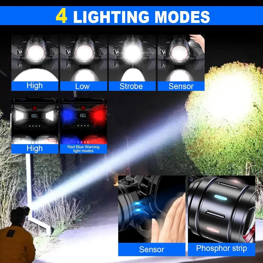 Long Beam Waterproof Headlamp - 1500m Range, Power Bank & 4 Modes Functionality ‹ › ‹ › ‹ › ‹ › ‹ › ‹ › ‹ › ‹ › ‹ › ‹ › Long Beam Waterproof Headlamp Unleash the power of advanced illumination with our exceptional Long Beam Waterproof Headlamp, designed for the adventurous spirit in you. Key Features: Super Bright Long Beam: Experience brilliance like never before with an incredible illumination range of up to 1500ft, thanks to the high-powered 20,000 lumen output and optical-grade double-convex lens. Rechargeable & Power Digital Display: Easily recharge via the USB Type C port in just 4 hours. Plus, utilize the headlamp as an emergency power bank to charge your phone or other devices. Long Runtime: Benefit from an impressive runtime of up to 20 hours in low mode, empowering your outdoor adventures without worry. 4+2 Light Modes & Motion Sensor: Customize your experience with multiple modes - high, low, strobe, SOS, and dual backlight modes. Control your lighting effortlessly with a simple wave of your hand when you activate the motion sensor feature. Zoomable & Adjustable: Easily adjust the headlamp's angle by 90° and zoom for spotlight or floodlight functionality, catering to all your lighting needs during camping, hiking, or emergency situations. IPX6 Waterproof & Durable: Built with a sturdy aluminum frame, our headlamp withstands harsh weather conditions and rough handling, ensuring it's always ready when you are. Why This Headlamp is Perfect for You: This headlamp is not just a tool; it’s an essential companion for the passionate adventurer. Whether you're camping under the stars, hiking in the dark, or navigating the depths of a forest, its superior brightness and functionality will illuminate your path. Dual-purpose as an emergency power bank, the headlamp combines convenience and practicality for outdoor enthusiasts. Compact, adjustable, and comfortable, the elastic headband ensures a secure fit, allowing you to move freely without hindrance. Its multi-use design makes it a valuable asset in various scenarios from fishing to professional tasks in dark spaces. Invest in your safety and experience unrivaled visibility – make it yours today! Shipping Free & Fast Shipping - We offer free shipping to most of the USA with a normal delivery time of 3-7 days. However, due to the current situation, additional delivery time (up to 3 weeks) may be required for some items. Alternative Carriers - We may use alternative carriers (e.g. USPS, FedEx, UPS, etc.) to ensure your package arrives safely and on time. Due to the use of multiple carriers, we are unable to provide a tracking number automatically. Handling Time - Orders are processed and shipped within 1-2 business days of receiving cleared payment. Shipping Restrictions - Shipping to Alaska, Hawaii, Puerto Rico, Guam, and other US territories may incur shipping charges or delivery restrictions. Please contact us before ordering, or your order can be refunded/cancelled. State Restrictions - There may be restrictions based on your state of purchase. For example, certain items may not be shipped to California due to state regulations. Contact for Tracking Updates - If you require tracking updates or have any concerns about the delivery of your order, please feel free to contact us, and we will be happy to assist you. Return 30-Day Hassle-Free Returns - We want you to be completely satisfied with your purchase. If you are not, you can return the item within 30 days of receiving it for a full refund or exchange. Easy Return Process - To start a return, simply contact us and we will provide you with a prepaid return shipping label and detailed instructions. Restocking Fee - There are no restocking fees for returns. However, the buyer is responsible for return shipping costs if the return is not due to a seller's error. Refund Processing Time - Refunds will be processed within 5 business days of receiving the returned item in its original condition. Payment We accept all major credit cards, PayPal, and Apple Pay for your convenience. Your payment information is secure and encrypted to ensure a safe and seamless transaction. Please complete your payment within 3 days of purchase to avoid any delays in shipping. Feedback Your feedback is extremely important to us. We strive to provide the best products and customer service possible. If you are satisfied with your purchase, please take a moment to leave us a positive review. If you have any concerns or issues with your order, please contact us before leaving negative feedback. We are committed to resolving any problems and ensuring your satisfaction. Contact Us If you have any questions or concerns, please feel free to reach out to our customer support team. You can contact us through the eBay messaging system. We are available Monday to Friday, 9:00 am to 5:00 pm EST, and we will do our best to respond to your inquiry within 24 hours. Thank you for supporting our small family business! UPC: Not Set Item Height: Not Set Item Length: Not Set Item Weight: 15.2 ounces Item Width: Not Set Voltage: 5 volts Model: Not Set Lumens: 20000 Number of LEDs: 1 Unit Quantity: 1 Material: Aluminum Features: Rechargeable,Waterproof,Power Bank,Motion Sensor Brand: Unbranded Type: Headlamp MPN: Not Set Operating Range: 1500 meters Power Source: USB IP Rating: IPX6 Color: Black Battery Technology: Li-Ion Country/Region of Manufacture: Not Set Lighting Technology: LED Number of Batteries: 3 Number of Lights: 1-3 Operating Time: More Than 10 Hours Unit Type: oz
