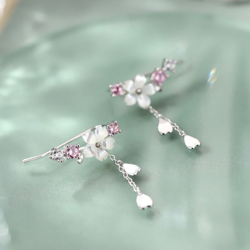Features: Elegant flower wrap earrings with threader tassel chain, inlaid with high zircon, unique and fashion jewelry for female. birthday cocktail party holiday anniversary wedding lovers girlfriends or yourself. high It is not allergic for your skin. Cherry flower dangle gracefully, adding that for extra of charm to any look.Suits with any dress. formal, casual, fashion, trendy or vintage. It just can pair with any outfit perfectly. Specifications: Size: Approx.29x22mm/1.14x0.87inch Package Includes: 1 Pair of Earrings note: Please allow 1-2cm errors due to manual measurement,pls make sure that you do not mind before you order. Due to the difference between different monitors, the picture may not reflect the actual color of the item.