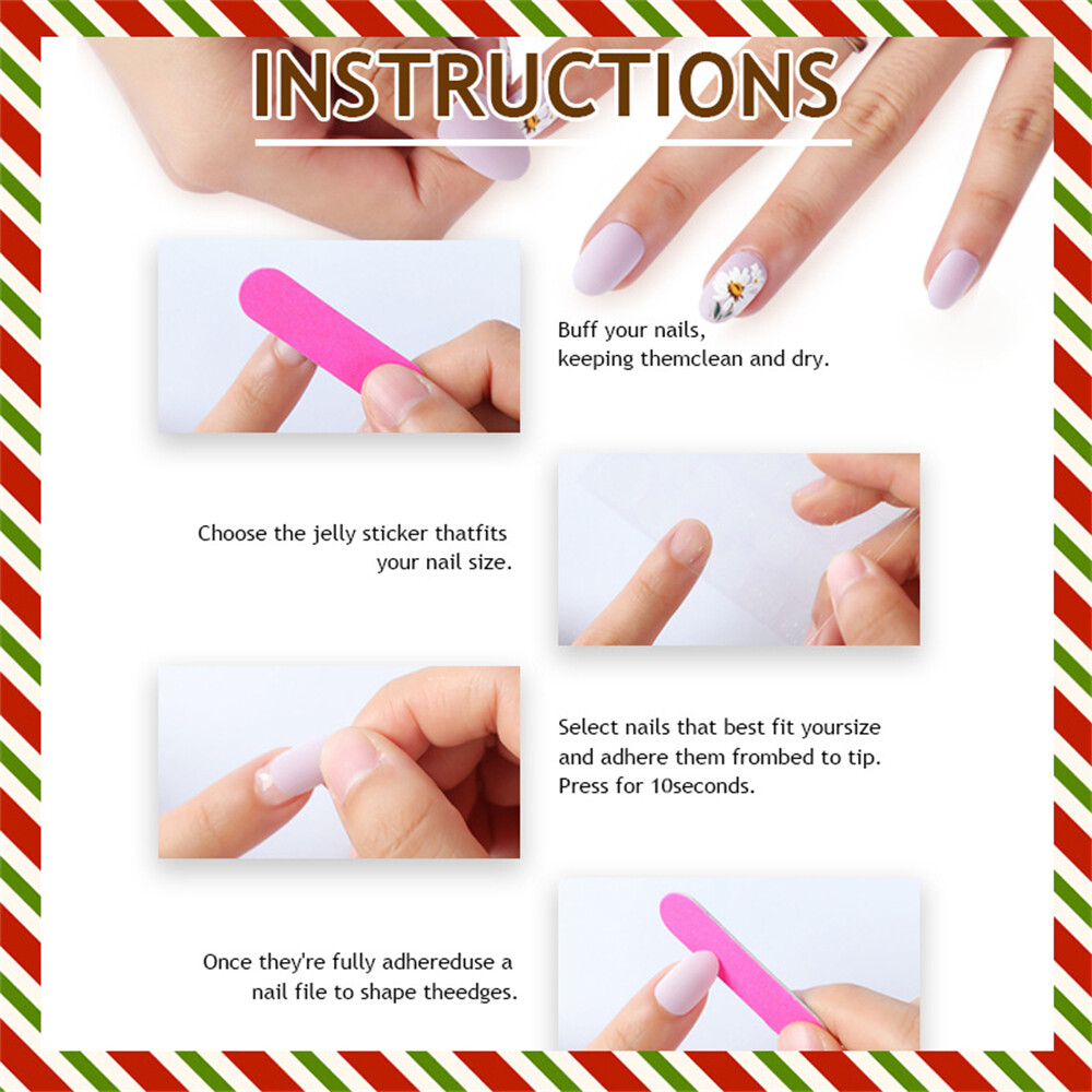 Type : False nails/Press on nails/Stick on nails/Nails Tips 100% New and high quality Color: Multicolored Material: ABS Plastic Package Includ ed: 2 4pcs False Nails with glue Feature: Full cover/Glue Included/Pre-designed/Durable/Detachable 1.This false nails are easy to file, paint and apply. It looks natural and nice holding the color without separating or streaking, making your tips magical and stylish. 2.Easy to use according to your option to wear them long or clip them short, easy to trim and file them to any length and shape you like. Mutiple application: The false nails are great for learners at all stages,suitable for nail salons and diy nail art at home,easy to remove,which are wonderful gifts for your wife,girlfriend,mother or sisters,as well as they are great fro parties,weddings,costume ball,Halloween,Christmas,etc. How to apply? 1. Trim the sides and cuticle area for an accurate fit. 2. Select the correct size of fake nails for each finger. 3. Apply our glue sticker on your nails. 4. Put on the fake nails. 5. Press on them for 10 seconds. 6. Art manicure finished. How to remove? 1. Soak in warm water for about 2 minutes and adhesive tabs can be removed easier. 2.Gently peel off the fake nails from the sides. Note: The nail piece is measured by hand in kind, there may be a little gap, hope for understanding!