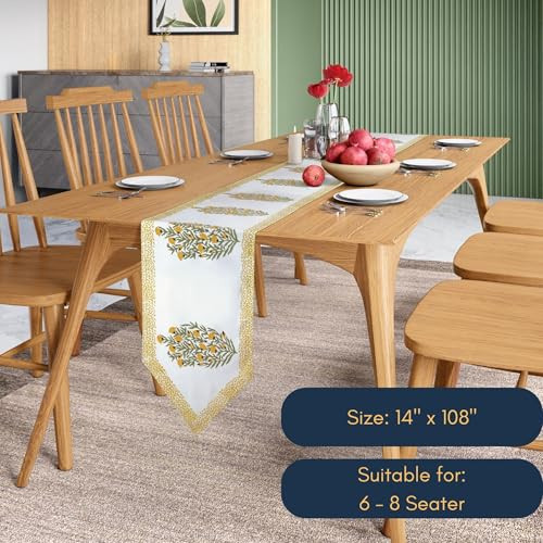Return Policy Fast Delivery Trusted seller Table Runner 108 Inches Cotton Fall Floral Linen - Fall Floral Farmhouse Decor - Dining Livingroom Bedroom Kitchen Runner - Christmas Thanksgiving - Block Print - Yellow Bloom Sicily (White Yellow) Product Description [100% Premium Cotton with Handcrafted Block Print] Each table runner is a unique masterpiece, created using centuries-old Indian block print table runners technique. The hand-carved wood blocks ensure individuality, with artisans investing 4 to 5 hours into crafting each exquisite piece. It’s not just a product; it embodies the skill and spirit of craftsmanship. [Inspired by European elegance] Yellow Bloom table runner features refined European florals, capturing sophisticated European charm. It adds a touch of timeless elegance to dining experience [Versatile use] Ideal for indoor/outdoor dining, weddings, parties, & holidays themes like Christmas table runner, Thanksgiving table runner, Halloween table runner and Fall table runner. Suits modern, vintage, farmhouse, boho, beach, and picnic settings. [Premium Gift Packaging] These pure cotton 14 x 108 inch table runners come in a sustainable, zero-plastic luxury box, making it ideal for gifting or reuse. A stylish choice for eco-friendly living! Perfectly complements ’s tablecloths, placemats, & cloth napkins. [Care Instruction] Hand and machine washable for easy cleaning. Durable and designed to handle everyday use, these tablerunners are perfect for both casual dining and special occasions. Shipping Returns Payment Shipping Shipping is FREE to all addresses other than APO/PO boxes in the lower 48 states. All our stock ships from US-based warehouses. Shipped via USPS or UPS (depending on location and package weight) Unless stated otherwise, all orders will ship within 24-72 hours of your payment being processed. Check our feedback to see the great reviews of FAST shipping we offer. Returns Seller does not accept returns Payment We currently accept payment via eBay managed payments only. Once payment is cleared, we will dispatch your shipment within 1-3 business days. Please refer to the "Shipping" tab for more information regarding shipping speed to your destination.