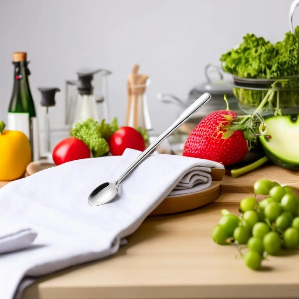 9 inch long handle heavy-duty iced tea spoon can lead directly to the bottom of Ice cream soda glass, sundae and dessert cup, milk shake, tall coffee mugs 9 inch long handle heavy-duty iced tea spoon can lead directly to the bottom of Ice cream soda glass, sundae and dessert cup, milk shake, tall coffee mugs Made from high quality 18/8 stainless steel with extra thick ergonomics handle, durable high-polish finish, not rough and will never cut your hands and mouth Superior to all on the market, modern design slender streamlined handle, easily mixes with existing flatware Suitable for bar, home, party use, ideal for mixing drinks like lemonade iced tea, ice coffee, milkshakes, root beer floats and enjoying Sundaes, Bartending essential tool Dishwasher-safe without harsh detergents, An exceptional value and an excellent gift for any occasion.