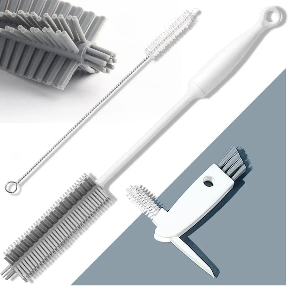 Bottle Cleaning Brush Set, Long Handle Silicone Cleaner Brushes + Gray, White Product Details Brand: leuapl Color: Gray, White Handle Material: Polypropylene Specific Uses For Product: Bottle, Water Bottle, Straw, Thermos Lid, Cup Product Dimensions: 12.59"L x 3.14"W x 1.37"H Long handle silicone brush:This cleaning brush has BPA free food grade flexible silicone bristles. Brush are tough on gunk, yet gentle enough to leave your bottle clean and scratch-free. Not a cheap thin or wire handle like other products. Firm and sturdy handle is easy to hold and use, the hook provided to hang it for drying and storage. 3-in-1 Bottle Lid cleaning Brush:This cleaning brush has 3 tool heads: ① Grey beveled brush can remove stubborn stains on the bottle lid. ② Stainless steel spiral brush can remove the stains in the creases and gaps inside the bottle lid.③ Gasket remover can help us easily remove the silicone gasket or rubber lid. Thicker and longer drinking straw cleaning brush: Length : 7.9 inches ( 20cm ); Bristle Diameters: 0.4inches; Made of Food Grade 304 Stainless Steel Wire and durable Long Nylon Bristles For Cleaning. Thoroughly Clean:Top design of the silicone brush makes it very easy to get the sides and corners.Durable bendable to reach even the most difficult of inside crevices. Adding additional bristles at the very end of the brush to get a thorough cleaning of the bottles bottom. There can repels unpleasant odors, stains, preventing nasty stains build-up which is more healthier for your family. You will no longer worry about the smelly sponge bristles, it may replace all bottle brush in your home . Multipurpose Cleaning Tools:This bottle cleaning brush set is designed to reach down into every corner of the bottles to properly clean them by cleaning residue. They can be applied to your dishes, baby bottles, Kids Food Jar, sports water bottles, stemware, vases, drinking glasses, glass mugs, tea pots, narrow neck carboys, stainless steel tumbler thermos ,wine decanter etc.