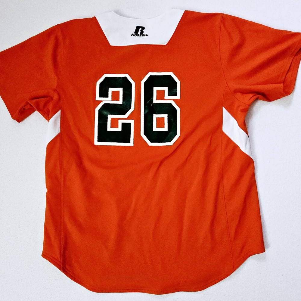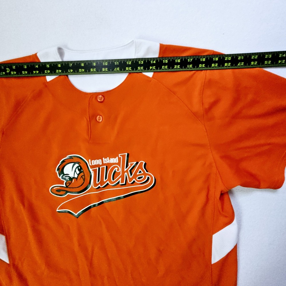 100% polyester jersey knit russell athletic dri power 1/4 button short sleeve baseball shirt. Long Island Ducks NY #26 trever bentoncourt pitcher. Shirt is in excellent clean condition no holes or tears. Sz Large Measures flat 19" across shoulders 23" pit to pit 30" Length
