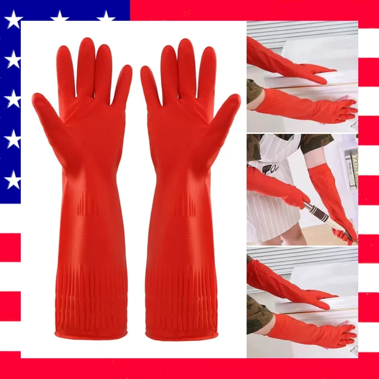 Heavy Duty Rubber Gloves with Extra Long Cuffs Safety Gauntlet Car Washing Gloves For Dish Washing Household Cleaning Description 100% new high quality color: red Material: rubber Length: 38cm Size: S/M/L Uses: Suitable for household, hotel catering, food processing, factory, enterprise manufacturing and other environmental water and oil proof, protect your hands Features: High quality natural latex, not easily corroded by corrosion Non-slip small particles, durable and not easy to fall off Strong elasticity, not easy to break The product contains: a pair of gloves