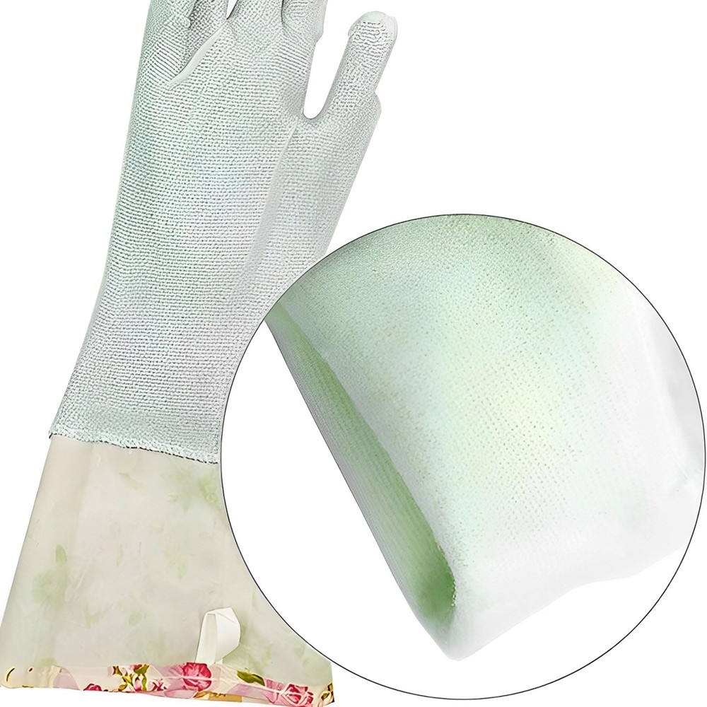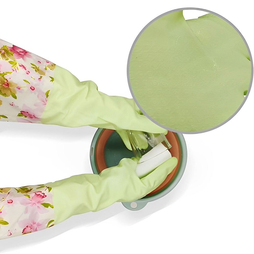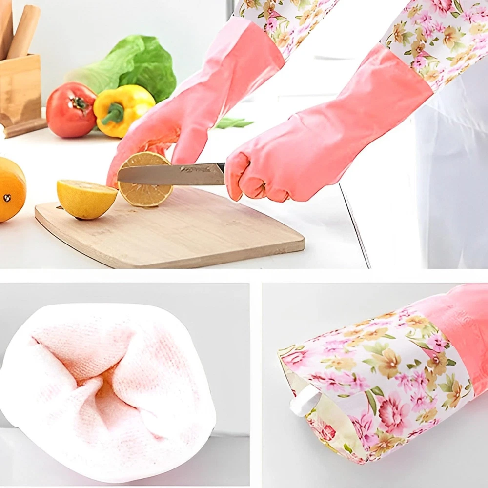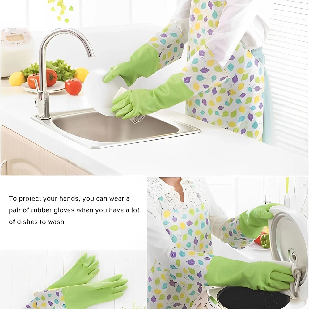 Long Rubber Latex Cleaning Gloves - 2 Pairs Dishwashing Gloves with Flocked Lining