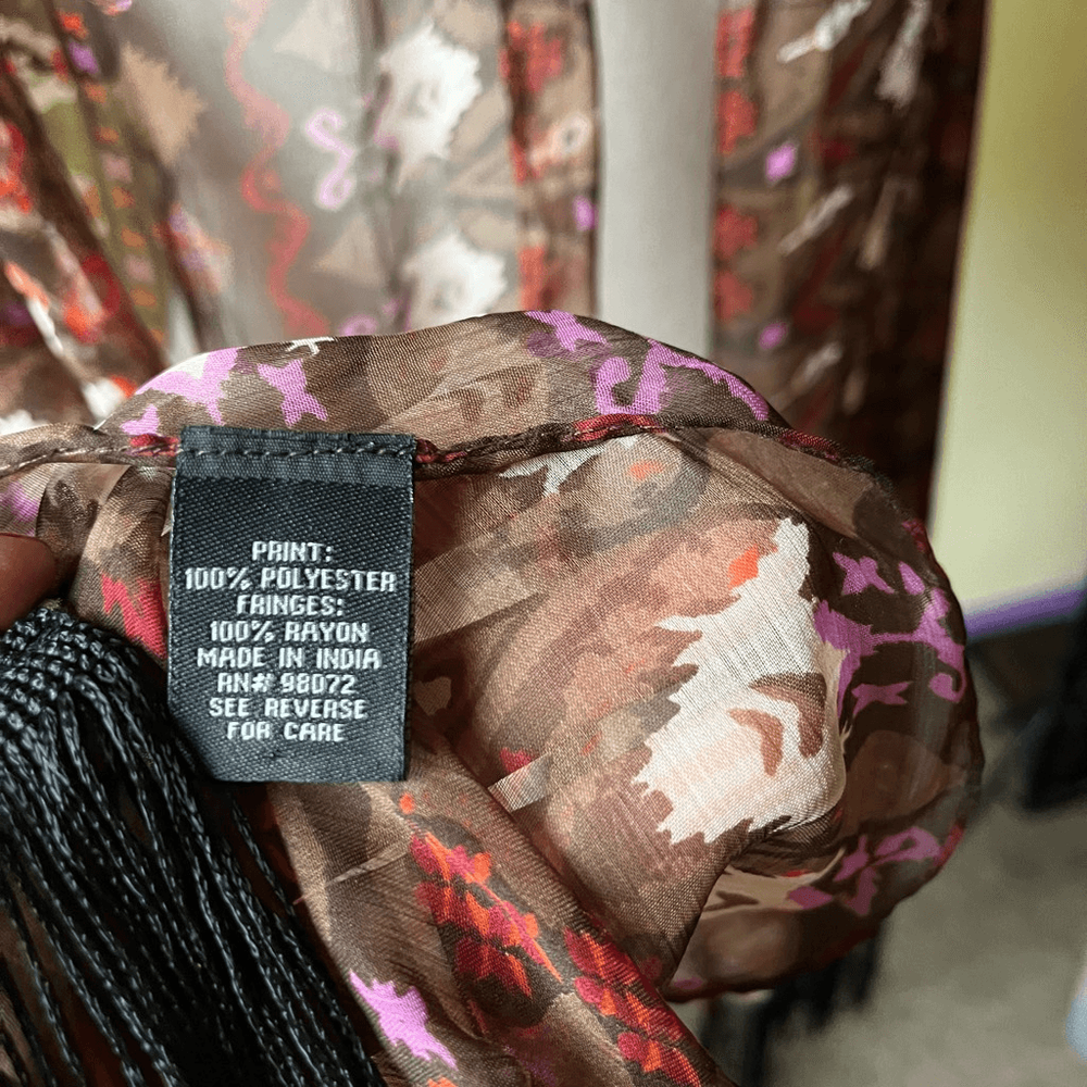 Long Sheer Scarf Shaggy Fringe Abstract Print Boho Dark Fairy Purple Black Material: Polyester Condition: Gently used π πΏ π πΏ π πΏ π πΏ π F L O W E R S F O R O L I V E R *Open to offers *Orders ship same day/ next day *Please message with any questions