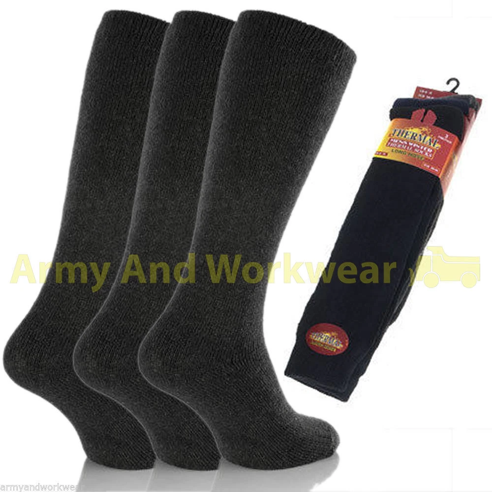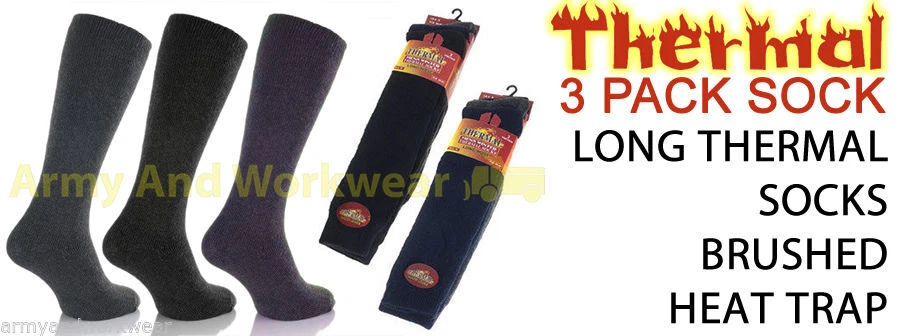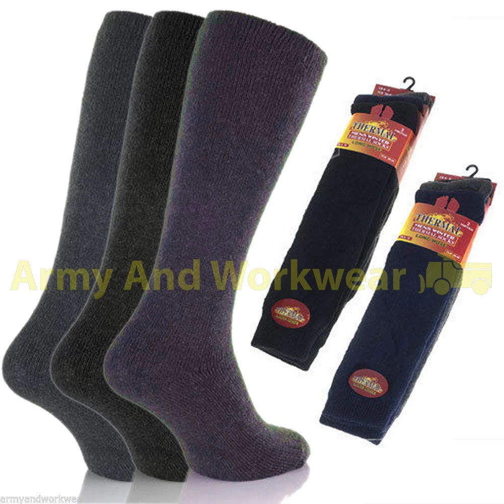 Long Thermal 3 Pairs Pack Mens Brushed Thick Warm Outdoor Work Winter Boot Socks