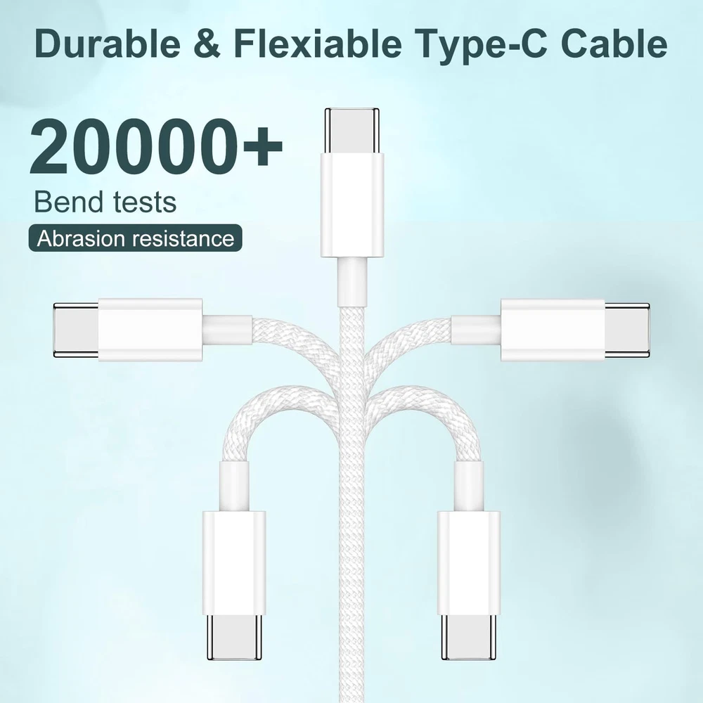 Long USB C to C Fast Charging Cable 6ft, 60W Type C to C Charger Cord for Apple iPhone 15 Plus/15 Pro Max, MacBook Pro 2021/2020/2019/2018,iPad 12.9/11 inch/Mini/Air 5/4,Samsung Galaxy S23+/S23 Ultra 【iPhone 15 60W Fast Charging cable】This iphone 15 pro usb c to type c cable support PD3.0/QC3.0/QC4.0 fast charging up to 60W charging. suit with USB-C adapters such as 18W/30W/45W/60W. charges iPhone 15,USB C Phone from to 60% within about 35 minutes, Improve iPhone 15 series charging efficiency and save time. and data transfer speeds up to 480Mbps (200 songs synced per minute) compatible with iPhone 15,Samsung,iPad Air Mini Pro,Macbook and More. 【many Protection USB C Port】USB to USB C Cable has electronic safety certifications that comply with appropriate standards, it built-in laser welding technology, which ensure the metal part won't break. which increases charging speed. Overheating and overcharging protection function to ensure the safety of you and your devi ce while syncing and charging.The copper core part is reinforced with UV glue to prevent the solder joints from falling off. 【Durable and Stable】Premium Nylon materials adding additional durability and tangle-free, can bear 20000+ bending test. Strong military fiber make it flexible.Unique laser welding technology make the connector prevent from broken.The USB C port through Load-bearing about 13KG test which longer service life and will break.Unique insulation and shielding allows for easier and safer charging and syncing. 【Right for ALL Your USB C Devices】This is the USB-C to USB-C cable Not the USB-C to USB-A cable, Compatible with virtually all USB-C devices including phones, tablets, and laptops. Such as iPhone 15/15 Plus/15 Pro/15 Pro Max, Samsung Galaxy S23/S22/S21+/S21/S20/ S20+/ S20 Ultra/ Note 10, MacBook Air/Pro 13'', iPad Pro 12.9-in.(6th ),iPad Pro 11-in.(4th ),iPad Air (5th ),iPad (10th generation),iPad mini (6th ) and more. 【What you get】3 pieces iPhone 15 USB C cables,If you have any questions about our iPhone cable, please feel free to contact us. We will give you a satisfactory answer to prove our emphasis on quality. You can buy with confidence. 【iPhone 15 60W Fast Charging cable】This iphone 15 pro usb c to type c cable support PD3.0/QC3.0/QC4.0 fast charging up to 60W charging. suit with USB-C adapters such as 18W/30W/45W/60W. charges iPhone 15,USB C Phone from to 60% within about 35 minutes, Improve iPhone 15 series charging efficiency and save time. and data transfer speeds up to 480Mbps (200 songs synced per minute) compatible with iPhone 15,Samsung,iPad Air Mini Pro,Macbook and More. 【many Protection USB C Port】USB to USB C Cable has electronic safety certifications that comply with appropriate standards, it built-in laser welding technology, which ensure the metal part won't break. which increases charging speed. Overheating and overcharging protection function to ensure the safety of you and your devi ce while syncing and charging.The copper core part is reinforced with UV glue to prevent the solder joints from falling off. 【Durable and Stable】Premium Nylon materials adding additional durability and tangle-free, can bear 20000+ bending test. Strong military fiber make it flexible.Unique laser welding technology make the connector prevent from broken.The USB C port through Load-bearing about 13KG test which longer service life and will break.Unique insulation and shielding allows for easier and safer charging and syncing. 【Right for ALL Your USB C Devices】This is the USB-C to USB-C cable Not the USB-C to USB-A cable, Compatible with virtually all USB-C devices including phones, tablets, and laptops. Such as iPhone 15/15 Plus/15 Pro/15 Pro Max, Samsung Galaxy S23/S22/S21+/S21/S20/ S20+/ S20 Ultra/ Note 10, MacBook Air/Pro 13'', iPad Pro 12.9-in.(6th ),iPad Pro 11-in.(4th ),iPad Air (5th ),iPad (10th generation),iPad mini (6th ) and more. 【What you get】3 pieces iPhone 15 USB C cables,If you have any questions about our iPhone cable, please feel free to contact us. We will give you a satisfactory answer to prove our emphasis on quality. You can buy with confidence. Shipping from the USA All of our products are shipped from the USA, ensuring quick delivery to your destination. Payment We offer the following payment methods: PayPal, credit card, bank transfer, and eBay's secure payment system. Free Shipping & Free Returns Shipping within the USA is FREE. Additionally, any return is absolutely free for you. Risk-Free Purchase You have the option to return an item within 30 days without any justification. We cover the return shipping costs! Fast Shipping We ship immediately upon receipt of payment. Generally, the package is delivered within 2-3 days in the USA. If it takes longer, we will contact you. Quality and Costs Made in Europe, USA, China No customs fees or additional charges Total satisfaction guarantee Invoice with declared VAT available upon request in .pdf format Feedback Your feedback is very important to us. After you pay for your purchase, you will automatically receive positive feedback from us.