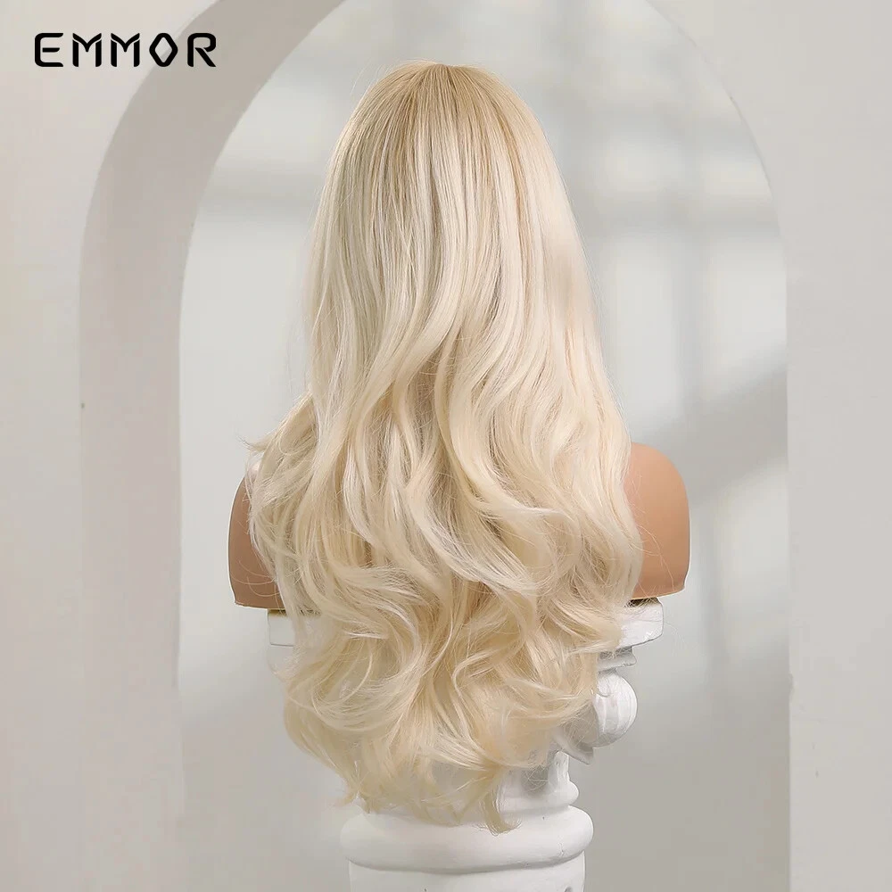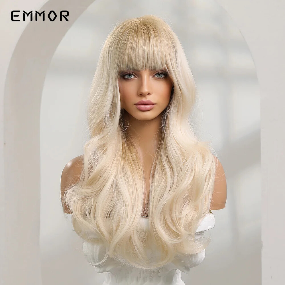 Ombre Blonde Platinum Wigs Long Synthetic Wavy Wig for Women with Bangs Party Daily Heat Resistant Fibre Hair Wigs Package includes: 1 *wig + 1*wig cap Material: Our wig is made of high-quality synthetic hair. The natural color looks like real human hair. It is soft,skin-friendly,soft and comfortable. Features: High temperature fiber wig, which can withstand a high temperature of 150 degrees Celsius (300 degrees Fahrenheit) Hat and size: The hat size is free size. The 100% breathable net inside the net makes you feel comfortable when wearing it. There are two adjustment straps on both sides of the wig, you can adjust him to the size of the head that suits you. Occasions: The realistic wig can help you perfectly match all occasions, whether it is daily work, weddings, parties, concerts, role-playing, theme parties, Halloween or video shooting, it is your best choice , Let you become the focus of the crowd. This is also a great gift for relatives and friends. Reminder: If you don't know how to care for the wig, please feel free to contact us.We have a large factory with 600 people, please don't worry about quality issues, and the product pictures are all real shots.