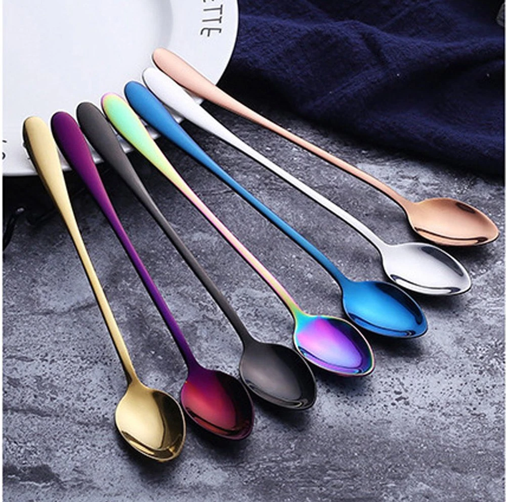 Iced tea spoons also called tall drink spoons, is a thin spoon with a very long handle. It is used primarily in the United States, for stirring sugar or other sweeteners into iced tea, which is traditionally served in a tall glass. just stirring tall glasses of cool iced tea, lemonade or chocolate milk, iced teaspoons are a perfect spoon for an ice cream sundae. Can also be use them for dishing out condiments like salsa and sour cream. Don't under estimate the ability of the iced tea spoon. Originally known as a parfait spoon, it is also commonly used for eating ice cream, especially floats and sundaes. As these desserts are usually served in tall glasses, regular teaspoons or dessert spoons become inconvenient choices due to their limited reach. This is why the spoon has a very long handle. They are durable and easy to clean so they will last through many uses. These stylish teaspoons are a fine addition to your kitchen or wet bar. Product details : Product Size: 7.5*1.2*0.15 inches Material: Stainless Steel Colour: silver Weight: 0.85 oz Quantity:8 pcs Notes: Do not leave cutlery to drain in dishwasher/sink for long time, Do not ust hard water to wash your cutlery as minerals in the water can corrode the mteal. Do not clean your stainless steel cutlery using abrasive cleaners on items like steel wool, They can leave tiny scratches over cutlery thus dulling the shine. Always use a mild detergent to clean your stainless steel culery. Avoid stainless steel cutlery to come in direct contact with aluminum as it releases chlorine which can lead to discoloration of stainless steel.Dry immediately after washing. Use a soft cloth to do so. 8-piece ice cream spoons/ice teaspoons, coffee mixing spoon Made of high quality stainless steel vacuum titanium, never change color Dishwasher-safe without harsh detergents Perfect for home, office and restaurant. Food quality materials for human,nice for family dinner party.