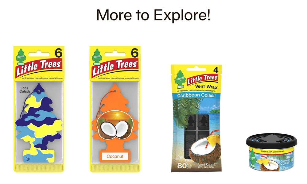 Car Air Freshener I Hanging Tree Provides Long Lasting Scent for Auto or Home I Caribbean Colada, 24 Count, (4) 6-Packs Caribbean Colada is an escape to a tropical island with juicy pineapple and sweet coconut. THE ORIGINAL CAR AIR FRESHENER: is the original car air freshener that freshens at home and on the road. LONG-LASTING FRAGRANCE EXPERIENCE: Specialized proprietary technologies combined with exceptional fragrances deliver long-lasting quality results. MORE THAN JUST A CAR AIR FRESHENER: Freshen up at home or on the road with the original car air freshener. Great to use in laundry rooms, garages, bathrooms, and pet odor areas. FRESHEN YOUR LIFE: air fresheners come in a wide range of product styles and fragrances, making it easy to find one you love! MADE IN THE USA: Rigorous testing and high quality standards ensures a premium fragrance experience made from only the best ingredients. CAR-FRESHNER CORPORATION strives to create and the best car air fresheners for both consumers and the environment. All fragrances meet or exceed the International Fragrance Association guidelines as well as our stringent internal safety standards. Shipping We offer FREE shipping on all orders! We ship within Three business days of payment, usually sooner. We use a selection of shipping services such as UPS, FedEx, USPS etc. We only ship to the lower 48 states, no APO/FPO addresses or PO Boxes allowed. Local pickups and combined shipping options are not provided at this time. Return You can return a product for up to 30 days from the date you purchased it. Any product you return must be in the same condition you received it and in the original packaging. Please keep the receipt. Payment We accept payment by any of the following methods: PayPal Please pay as soon as possible after winning an auction, as that will allow us to post your item to you sooner! Feedback Customer satisfaction is very important to us. If you have any problem with your order, please contact us and we will do our best to make you satisfied. Contact Us If you have any queries, please contact us via ebay. We usually respond within 24 hours on weekdays. Please visit our eBay store to check out other items for sale! Thank you for shopping at our store.