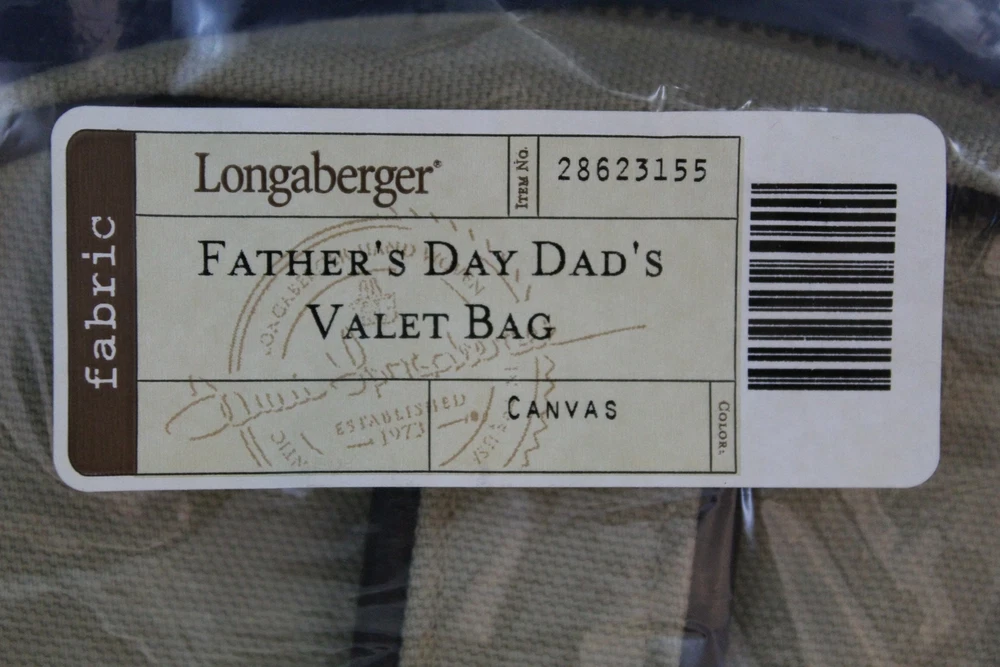Longaberger 2004 Fathers Day Basket Dads Valet Zippered Shaving Kit Bag#28623155 BRAND NEW Longaberger 2004 Fathers Day Dads Valet Zippered Valet Bag in the Khaki Canvas fabric with the Dark Brown Edging for the 2004 Fathers Day Dad's Valet Basket which measures 10"L x 6.75"W x 3.75"H. Great for that Guy on the Go! The Valet Bag fits in the Valet Basket when he's home and with a quick zip, he's ready for the road. A picture of the Basket Combo has been provided for your REFERENCE ONLY. See my other ads for the Matching Basket Combos, WoodCrafts Lids, Khaki Canvas Valet Bags, Tie-Ons and Protectors for this Basket or any accessories for the other Father's Day Series Baskets. This item is MINT, NEVER USED in the ORIGINAL packaging and has been stored in a closet in my CLEAN, TOTALLY NON-SMOKING home. THE BASKET SHOWN IS FOR YOUR REFERENCE ONLY AND IS NOT INCLUDED IN THE SALE. Your basket should look much the same as the picture provided (stain colors don't apply) and be close to the dimensions stated above or this item may not fit properly. You need to know the correct Longaberger name of your basket to purchase the correct accessories. We try to describe our items truthfully and accurately. If you have questions or need help identifying your basket, please ask before you purchase. We gladly combine shipping for multiple items. Powered by SixBit's eCommerce Solution