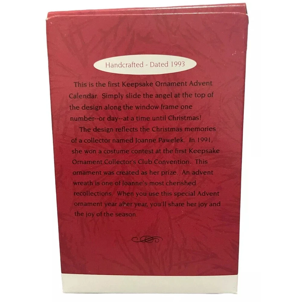 Time Period Manufactured:1990-1999Type:OrnamentMPN:QX5685Features:Hanging, Standing, Vintage, Handcrafted, DatedTheme:ChristmasBrand:HallmarkCollection:OrnamentsVintage:YesFranchise:HallmarkProduction Technique:UnknownPersonalize:NoUPC:15012067491gtin13:15012067491Year Manufactured:1993Subject:CalendarCustom Bundle:NoMaterial:Mixed MaterialsSize:MediumShape:IrregularOriginal/Licensed Reproduction:OriginalHandmade:NoColor:MulticolorSet Includes:Ornament, Original BoxPattern:No PatternCountry/Region of Manufacture:ChinaAntique:NoOccasion:ChristmasNumber of Items:1