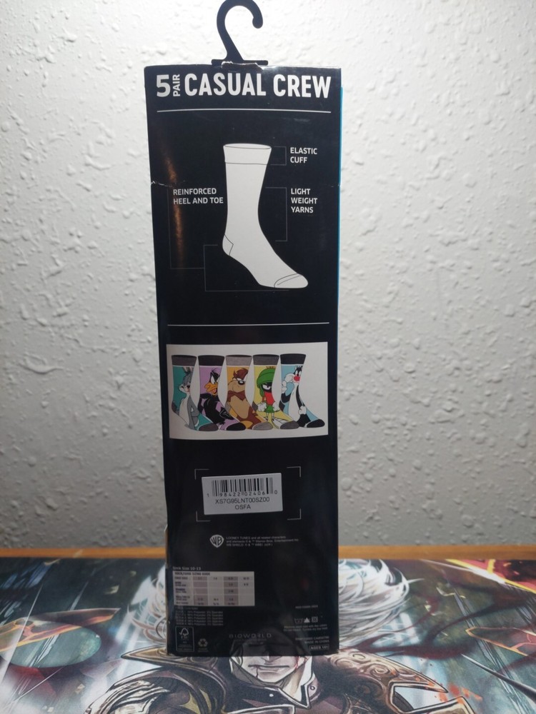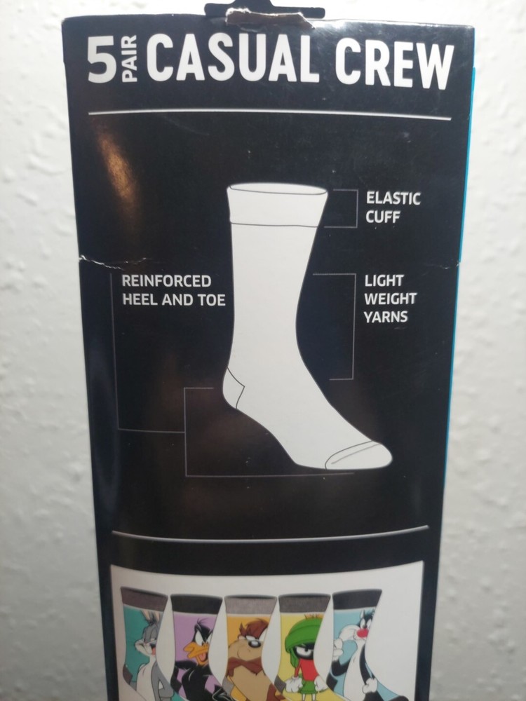 Step up your sock game with these Looney Tunes Bugs Bunny, Daffy, Taz, Marvin, and Sylvester crew socks. These casual crew socks are made of 98% polyester and 2% spandex, making them perfect for all seasons. You'll get a total of five pairs of socks in this pack. These socks are perfect for casual occasions and are available in a size 10-13. They're a great addition to any sock collection and are sure to be a hit with any fan of the Looney Tunes franchise. Get yours today and add some fun to your wardrobe!