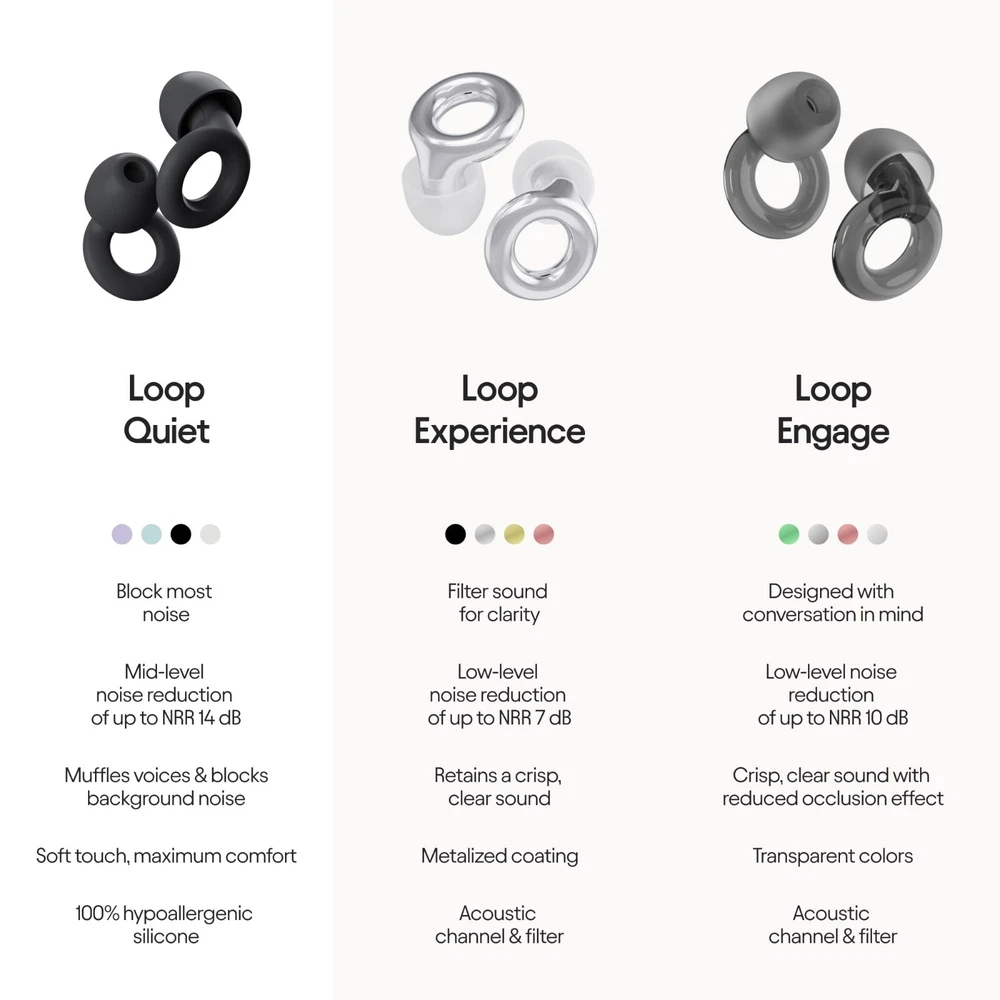 About this item NOISE REDUCTION - Loop Quiet earplugs are reusable and durable hearing protection, made from soft silicone. They reduce most noise and help you to get in your bubble. They have a noise reduction rating (SNR) of 24 decibels, NRR of 14 and come in 4 stylish colors. OPTIMAL COMFORT - These noise reducing earplugs come in 4 different sizes, so you can always find the perfect fit. The iconic round shape of Loop Quiet sits perfectly in your ears, making it a fashionable accessory that protects your hearing. MULTI-PURPOSE - Loop Quiet are versatile earplugs that offer protection from loud noises and background noise in many situations. They are great for sleeping and can help you to focus or to concentrate while studying, working or reading. And of course, they are a must have while traveling or commuting. EASY TO USE - These earplugs are easy to insert and when you wear them correctly, they don't stick out of your ears. They come in 4 sizes (XS - L), if your ears hurt, it is best to take a smaller size. If the earplugs do not reduce sound sufficiently or fall out, it is best to try on a size larger. IN THE BOX - In Loop Quiet's eco-friendly packaging, there is 1 set of Loop Quiet earplugs, 4 sizes of soft silicone ear tips (XS-L) and 1 handy carry case. Our earplugs are reusable and washable, providing a sustainable solution to disposable plugs. π· If I am using stock photos you will receive the item(s) in the listing. π· If I am not using stock photos you will receive the exact item(s) pictured so, be sure to review the photos for the items condition. π Please ask questions before bidding! π β IMPORTANT! When you purchase an item(s) from me, you are consenting to all the terms specified below. Please refrain from placing a bid or making a purchase if these terms are not acceptable to you. If any of this is not clear, please reach out to me for clarification. β All items sold AS-IS no warranty offered or implied. β Returns accepted within 14 days only. β Buyer pays return shipping. If you falsify a return reason to avoid paying return shipping, you WILL be reported to Ebay. β All returned items will be unboxed in front of a video camera & must be returned in the exact same condition (both visually, functionally &, if applicable, unused if sold as new) as when they were shipped. Any deviation will result in no or reduced refund. β I am a reseller of inventory sourced from Overstock, Returned Goods, Thrift Stores, Storage Units and other various sources. If the item is new, it will be listed as such but still may be an open box item. β If the item is open box, it means it the item(s) may have been tried by the original buyer who may have then decided they no longer wanted the item. In the world of retail, as is with here, the item is still considered new. β As I am a reseller of overstock, returned goods and the like, I inspect each item carefully and make sure they are new and complete. However, there is a slight possibility that something might be missing. I apologize in advance for any inconvenience this may cause. β Thank you for your cooperation and understanding. A Miix of Everything | Ebay Stores