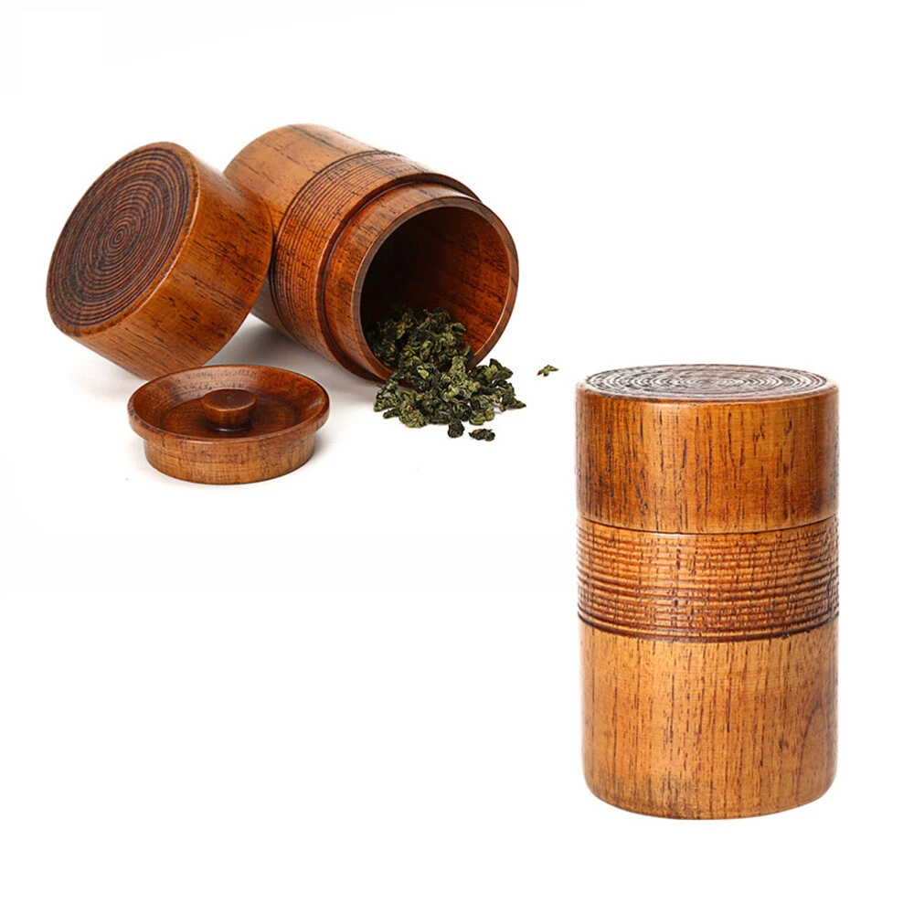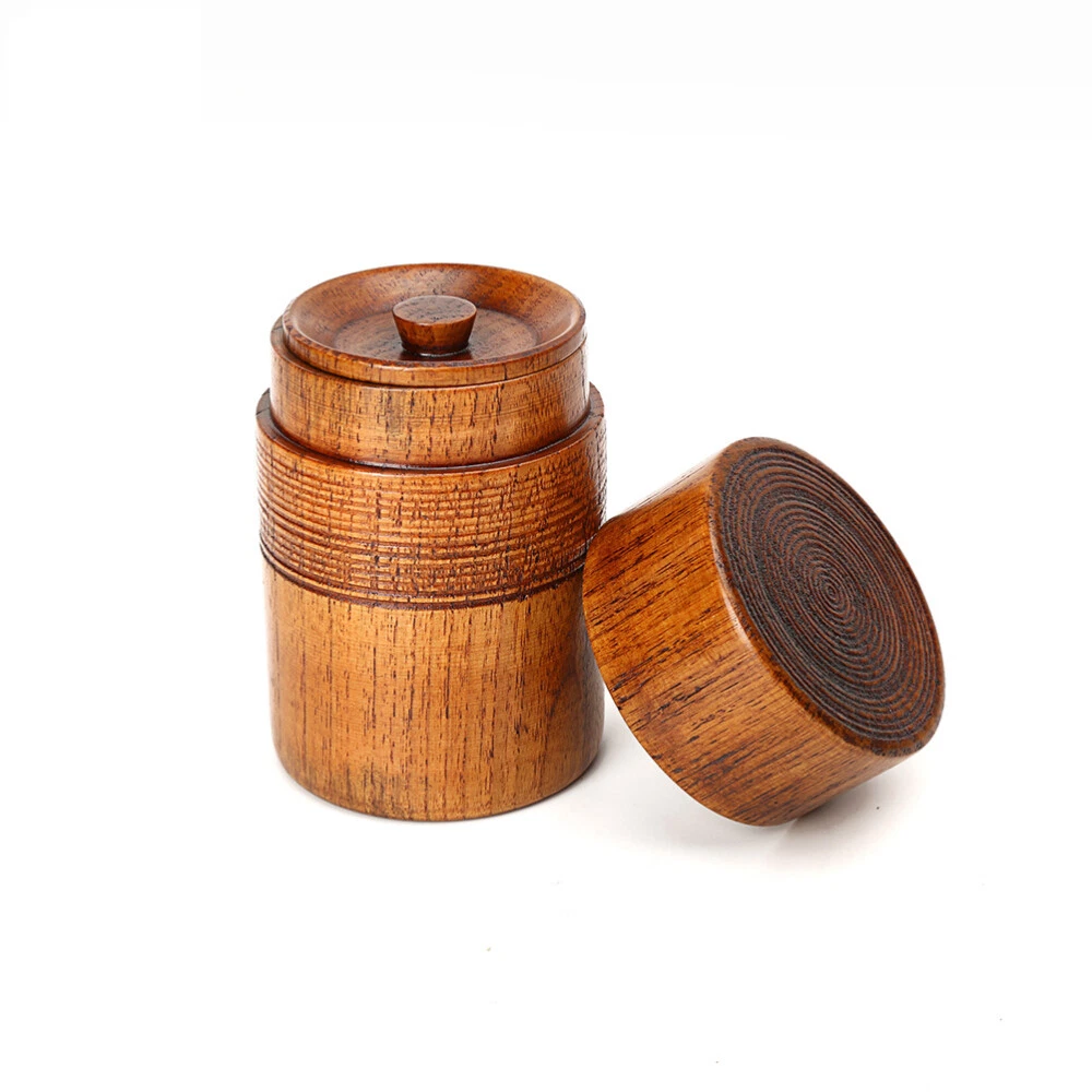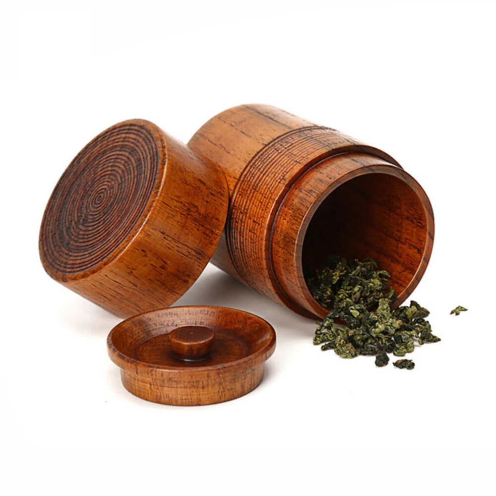 Loose Tea Container Jar with Wooden Lid Brown Chinese Style