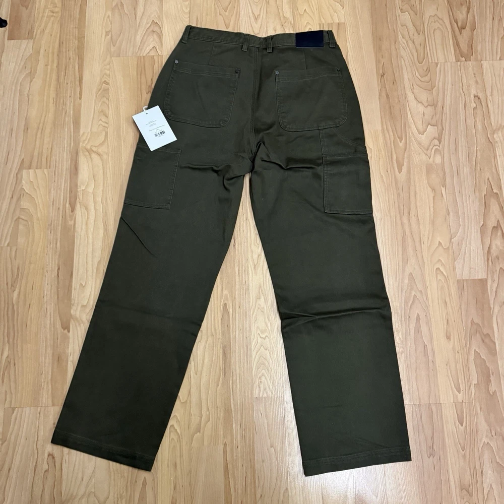 Elevate your wardrobe with a versatile piece that transcends occasions from casual outings to business meetings and even formal events. These straight-leg carpenter pants feature a convenient combination of button and zip closures, along with practical slash pockets for utility. The mid-rise waist and 31-inch inseam provide a comfortable fit for those who prefer a regular size S. Caring for these pants is a breeze, as they are machine washable, ensuring they remain a staple in your attire throughout the year.