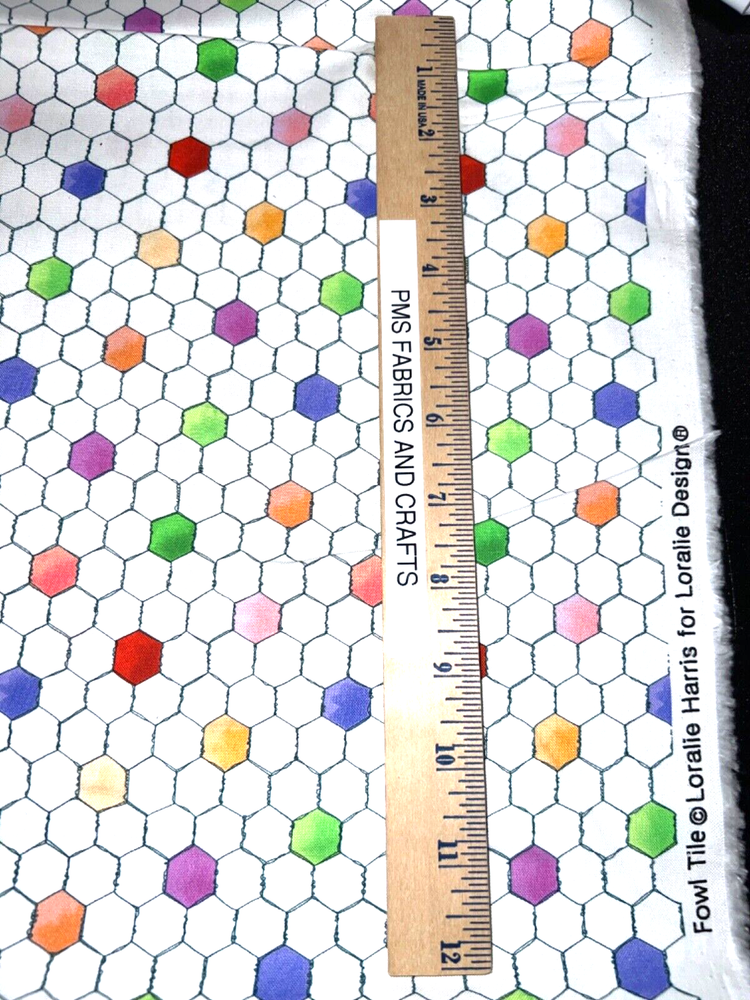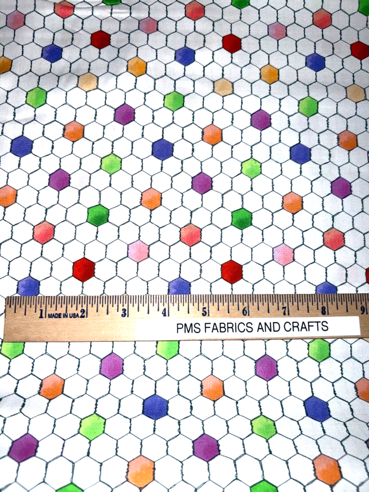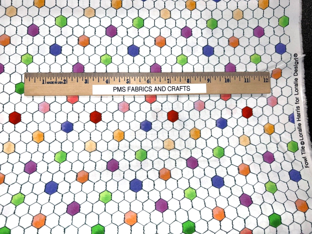 Loralie Designs 100% cotton fabric - Sold by the YARD - each yard measures approximately 36 inches X 44 inches . Great 100% cotton fabric . This print show wonderful images of chicken wire on a white background fabric with multicolors. Look closely at the pictures, the images look like it is real wire! NOTE real chicken wire but fabric with chicken wire images. The ruler that is shown in the pictures are not included in the price - just shown to help you see the image size. Reminder that some computers or mobile devices may NOT show the accurate color. The last picture shows the manufacture washing instructions for this fabric. To see other Loralie prints in our shop, search LORALIE in our store! Uncut until ready to ship so if you purchase multiple yards these normally will be shipped as 1 section of fabric! Great fabric to make great pillows, mug rugs, quilt blocks & more! Not recommended for sleepwear. NEW unwashed 100% Cotton - in smoke free, vapor free & pet free home! Shipping is to USA only - please review the shipping tab for current shipping rates. PLEASE DO NOT pay for the items individually - WAIT to pay for all items together to save you time & money! When wanting to purchase 4 or more items (same item or can be a mixture of items from our store), please request a special listing! Just message me the item numbers that you want, the qty of each, your mailing zip code & then I can create you a special listing here on ebay with the correct shipping rate! This will save you money on shipping! As per Ebay customer support, Ebay programming will not allow a customer to request the invoice total since we offer discounts on our items, so in order to get the best rate shipping we must create a special item here on Ebay after you send us the item numbers, qty of each, & your mailing zip code. Once payment is received & clears Ebay & please make sure that the USA mailing address is correct on the payment, we will ship US Postal Service or for larger orders, we also use UPS for the best rate shipping. NOTE that the shipping is only good for the initial mailing. If the address is incorrect on your payment & the package is returned to us, you will be charged shipping again so that we can remail - this is why it is IMPORTANT that you make sure that your shipping address is correct on your payment! If your order had free shipping, then you will be charged a 2nd shipping fee as well - again this is why it is important to review your payment BEFORE you complete it. Please note that orders paid by Echecks will NOT be shipped until Ebay & your bank clears your payment which normally takes 3-5 business days. The time period for clearing TOTALLY depends on your bank & EBay but once the clearing is sent by Ebay, we will be able to mail the package. NOTE that the date on EBay is an ESTIMATED delivery date AFTER the payment clears Ebay. This is ONLY an estimate so please do not expect the package to arrive exactly on this date since once we mail the package we cannot control the time that it takes for USPS to deliver the package. Please be FAIR on your feedback since once we mail the package (you will get a tracking number & a message notice showing we mailed the package & the date) we cannot control the actual delivery date. Return policy - In order to comply with Ebay power seller guidelines, we are forced to accept returns for Ebay BUT please understand that any item that has been washed, cut or around smoke, vapor or pets will not get a full refund once the return is received at our location. This is due to the fact that we sell new - unwashed - smoke free - pet free items & once it is altered, washed or around smoke or pets, it is no longer sellable. Shipping for the original package is non-refundable - if your item had free shipping, the actual cost of shipping your order will be deducted from any refund. NOTE that any return on special listings or custom orders will be charged a 10% return fee! Please note that we include a packing slip with EVERY order that includes the order details like item, qty, our Ebay shop name and contact information. This helps prevent lost packages by the carrier in case where the label is removed from the outside of the package. Thanks for shopping pmscrafts74 – we appreciate your business & look forward to hearing from you!