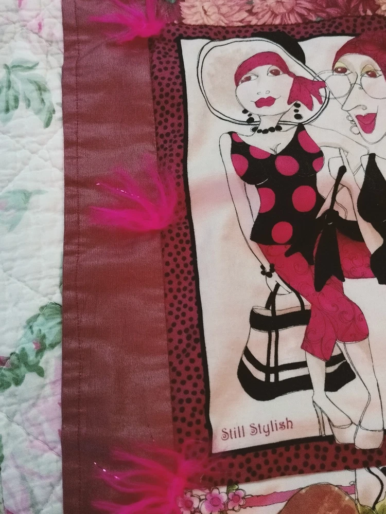 This beautiful throw quilt with Loralie Designs On The Mend original drawings is a perfect addition to any collection. The quilt is handmade with a patchwork technique and features a multicolor design, making it a perfect statement piece. The dominant color of the quilt is pink, which adds a touch of femininity to any room. The quilt is made of a cotton blend material, making it soft and comfortable to use. The On The Mend Breast Cancer Awareness Throw Quilt is a perfect gift for anyone who has been affected by breast cancer. It is a unique and personalized piece that will surely make a statement. This quilt is signed by the artist and is an original piece, making it a valuable addition to any collection.