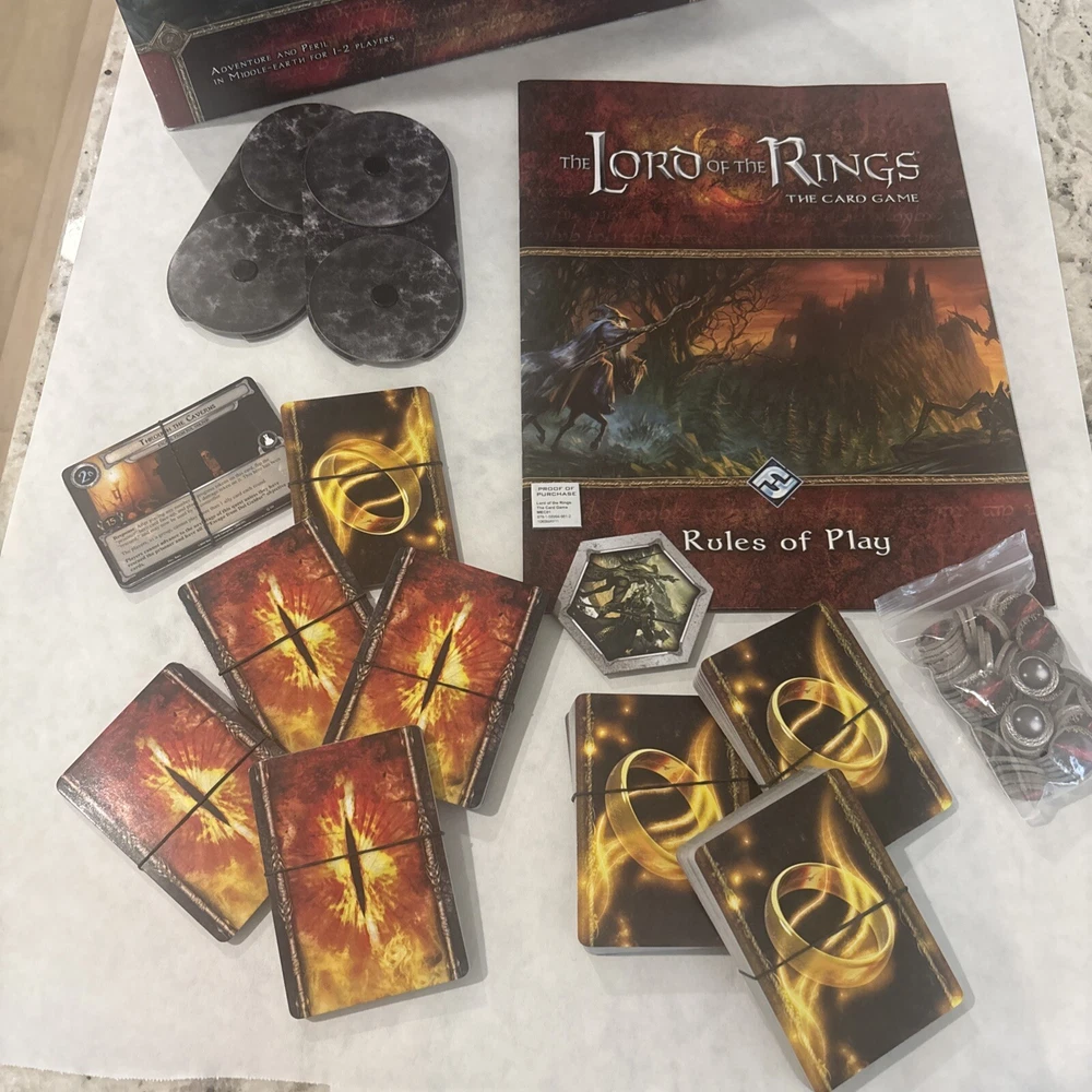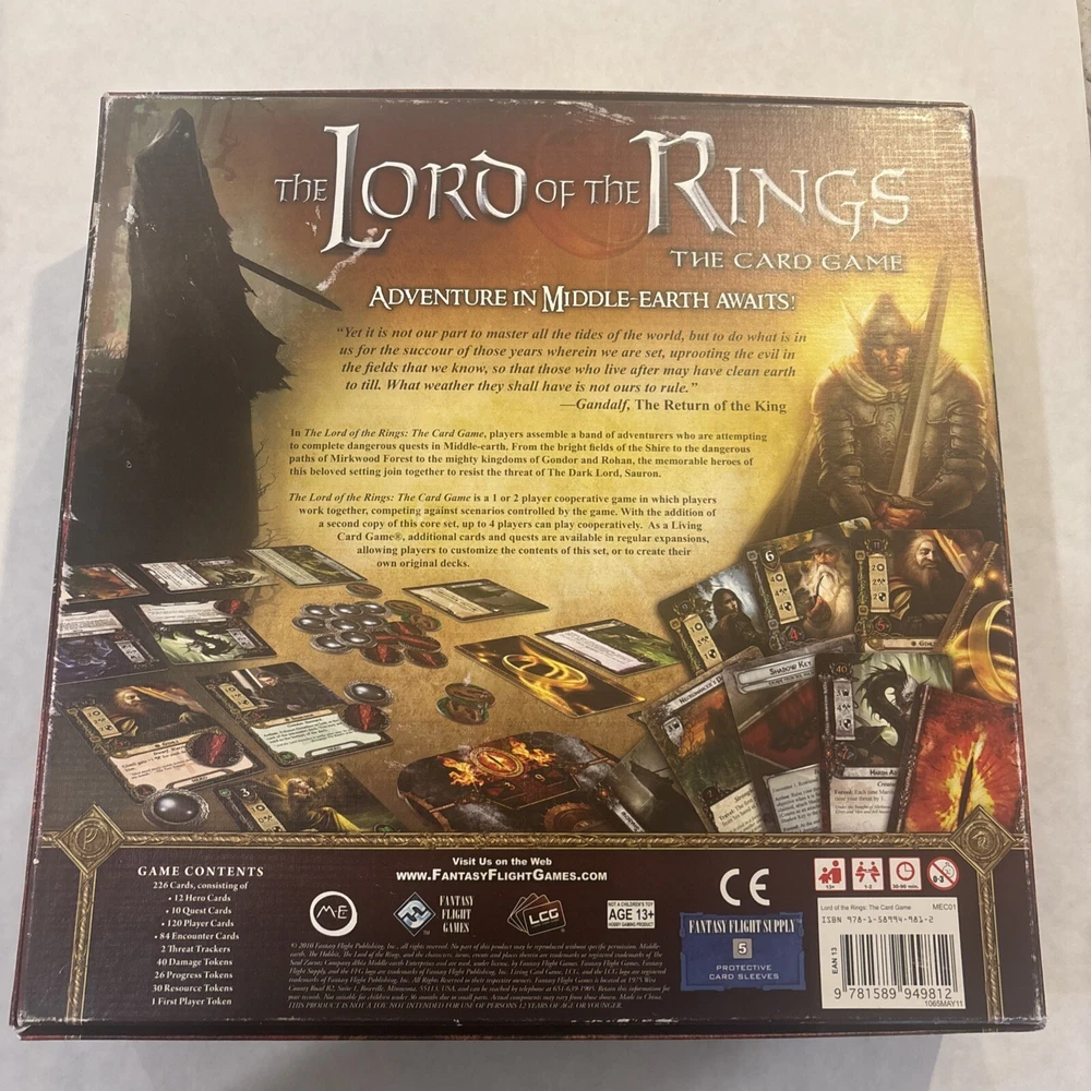 Immerse yourself in the world of Middle-earth with this exciting Lord of the Rings Card Game by Fantasy Flight Games. Perfect for 1 to 2 players, this Living Card Game is a must-have for any fan of the franchise. With a recommended age range of 14+, this card game is sure to provide hours of entertainment for both kids and adults alike. Featuring characters and themes from the beloved series, this game is set in the year 2010 and has won the prestigious Games 100 award. Whether you're a seasoned player or just starting out, The Lord of the Rings Card Game is a great addition to any game collection. So why wait? Add this fantastic game to your lineup today!
