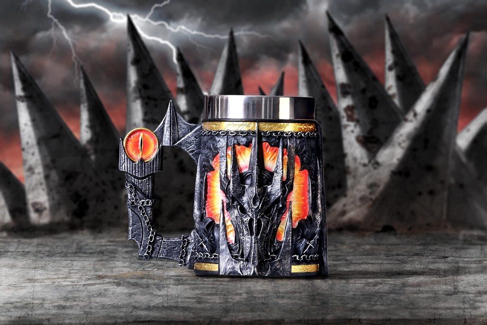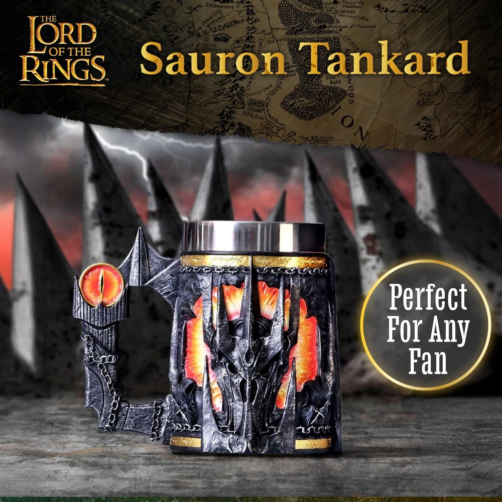 Officially Licensed Lord of The Rings Sauron Tankard, Grey, 15.5cm Dark Lord's Tankard: Features Sauron's helmet and Ringwraiths, with the handle formed by Barad-Dur and the Eye of Sauron, adding a touch of menace to your drinkware. Intricate Hand-Painting: Hand-painted with precision, each tankard features vibrant colors and detailed design, making it a standout piece in any collection. Robust Resin Build: Crafted from premium resin, this 15.5cm tankard offers durability and a striking visual appeal, ideal for both use and display. Journey to Middle-Earth: Officially licensed, collectible merchandise for every Lord of the Rings fan. Ideal gifts for fantasy lovers of Frodo, Sam, Gollum, and their adventures. Discover : Creators of original, officially licensed pop culture merchandise, giftware, and collectibles from top music, gaming, TV, and film brands. Elevate your collection with us.