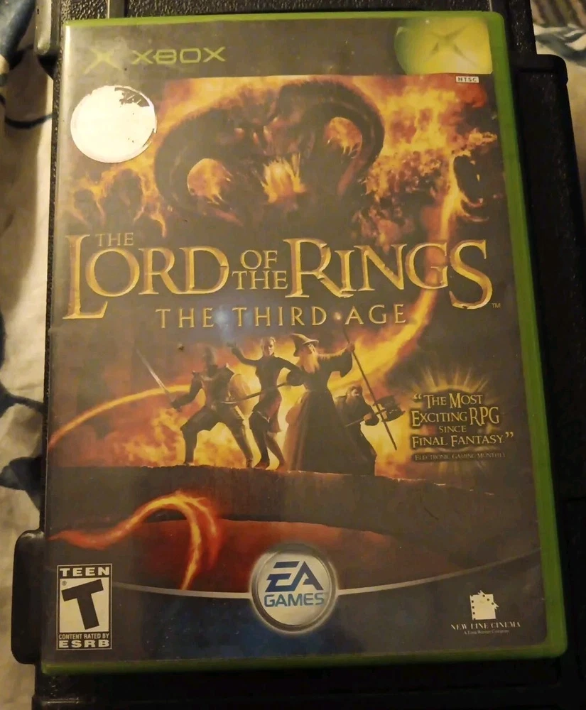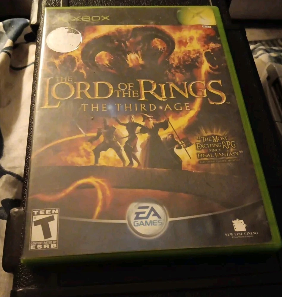 The product is a role-playing game titled "Lord of the Rings: The Third Age" released in 2004 for the Microsoft Xbox. Developed by EA Games, the game is rated T-Teen and is set in the world of J.R.R. Tolkien's Middle-Earth. Players can explore the vast landscapes, battle enemies, and experience an original story that runs parallel to the events of the iconic Lord of the Rings trilogy.