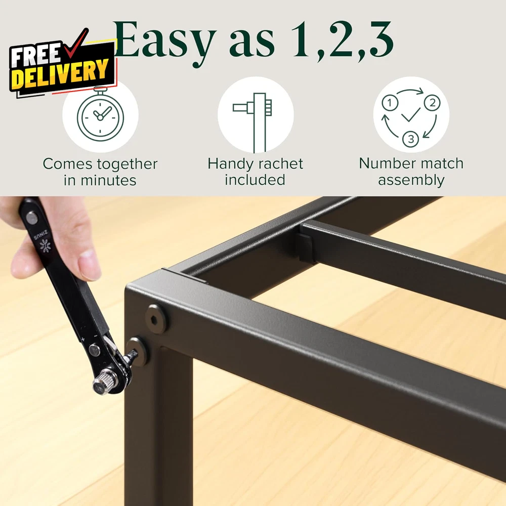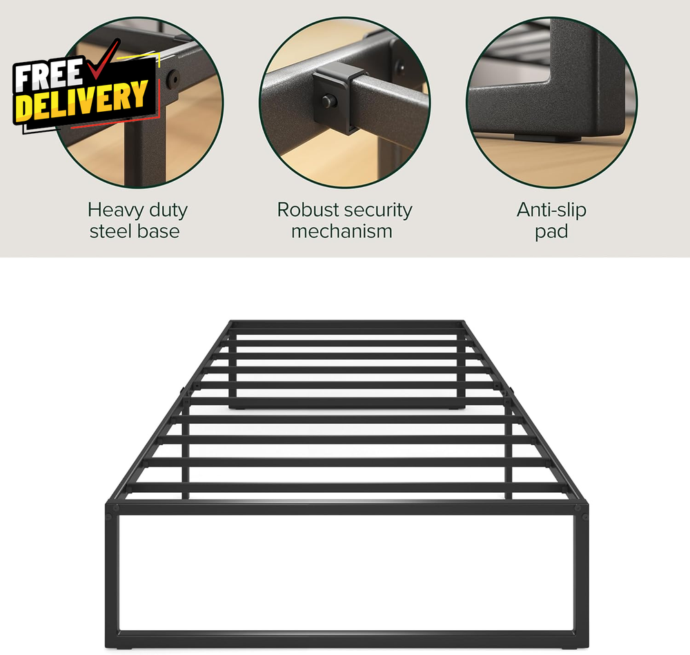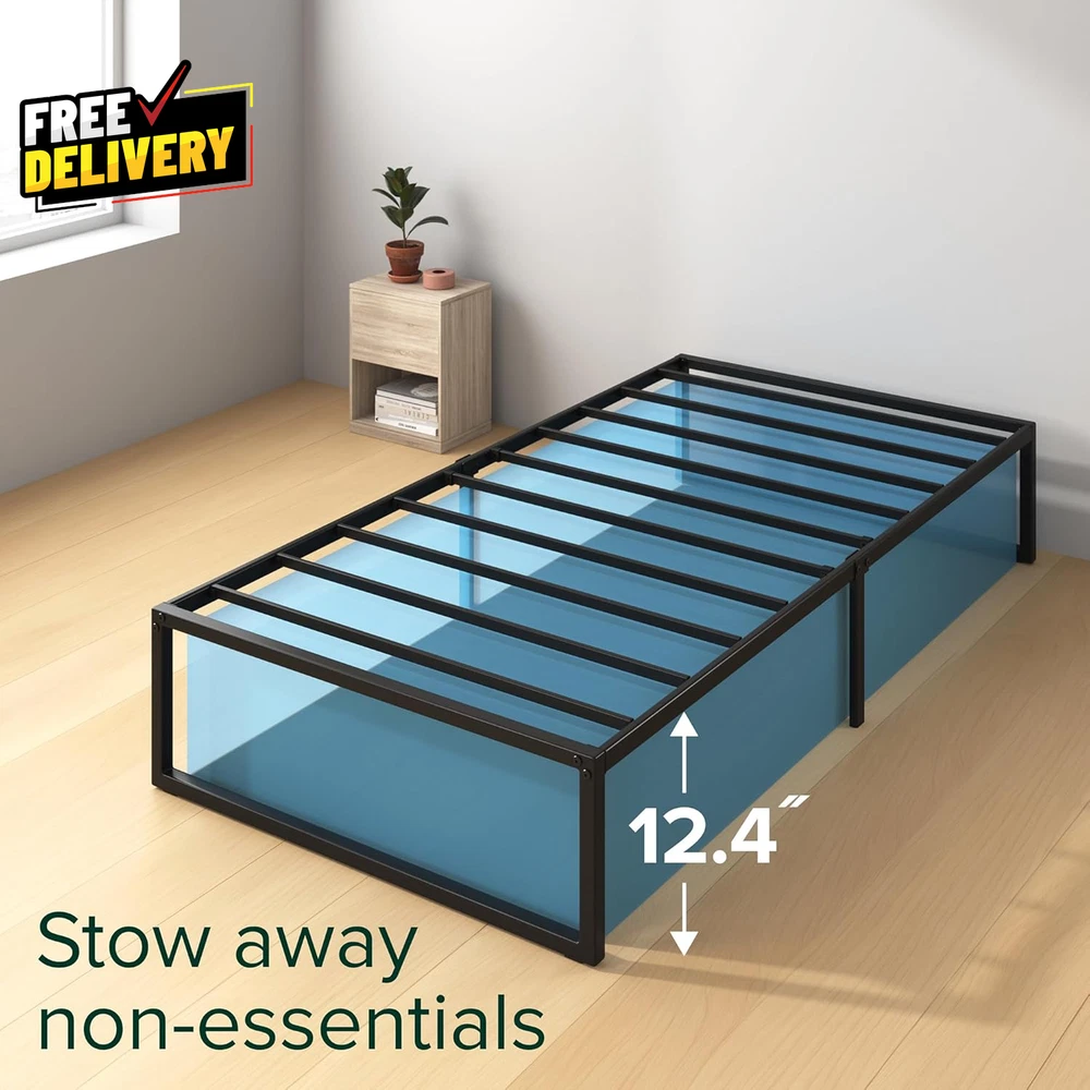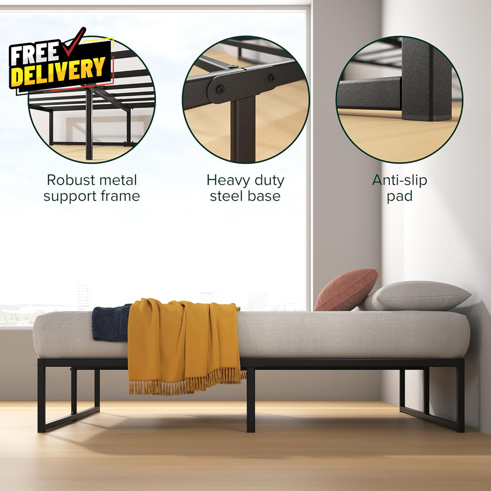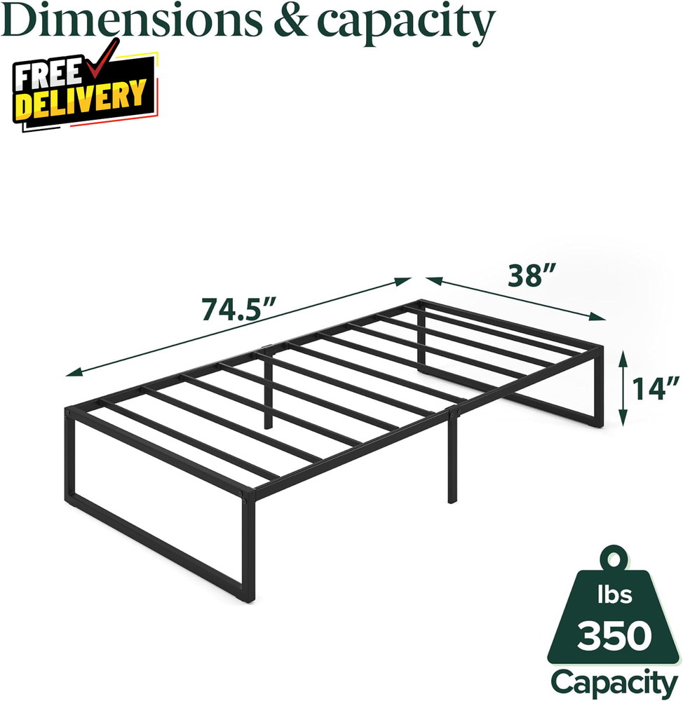 Store New Arrivals Add to Favorite View Feedback Contact Lorelei 14 Inch Metal Platform Bed Frame Steel Slat Support No Box Spring Needed Description Strong and Durable Steel MINIMALIST DESIGN, EARTH-FRIENDLY WONDERBOX(TM) - Featuring a modern and durable foundation, this sleek bed frame is shipped in a box designed to leave a smaller carbon footprint PRACTICAL AND RELIABLE DESIGN - This frame offers an ultra-durable metal structure and 12.4 inches of underbed space for storing extra odds and ends NO BOX SPRING NEEDED - Reliable metal slats are designed to support and extend the life of your spring, memory foam, or latex mattress without a box spring, supporting up to 350 lbs (Twin) EASY ASSEMBLY - All the parts, tools and instructions you need for easy, two-person assembly in under an hour are efficiently packed and shipped in our new, earth-friendly WonderBoxTM Item model number OLB-SMPB-14TS Style New Small Box 14” Item Weight 22.7 pounds Maximum Weight Recommendation 350 Pounds Item Weight 22.67 Pounds Compatible With Mattress Size Twin Assembly Required Yes Batteries required No Product Dimensions 75"L x 39"W x 14"H Form Factor Platform Included Components Assembly tools, Foundation, Installation Manual, Slat Fabric Type Strong and Durable Steel Assembly Instructions Description Included, detailed instructions for two-person assembly in under an hour Ground To Item Distance 12.4 Inches Special Feature All tools included, Durable Structure, Easy Assembly, No Box Spring Needed, Squeak Resistant Material Alloy Steel, Metal Style New Small Box 14” Color Black Finish Type Painted Furniture Finish Metal Global Trade Identification Number 00841550369298 Storage Options Under-bed storage Finish types Painted Product Care Instructions Wipe with Dry Cloth Size Twin ABOUT US Prior to making any purchase from our store, we’d like to introduce ourselves. My name is Shahzad Yaqub , and I am the proud owner of Epic Emporium Deals , located in the great state of Illinois, USA. I have been an active and trusted eBay seller since Jan 14, 2025 . At Epic Emporium Deals , we are committed to offering competitive prices and top-quality products . Our extensive collection features a wide variety of items, including media such as books, movies, music, and games , as well as electronics, toys, sporting apparel, clothing, tools , and general home and garden essentials —and much more! If you have any questions or require assistance, please don’t hesitate to reach out. Your satisfaction is our priority, and we look forward to providing you with an exceptional shopping experience. SHIPPING We are always working hard to ensure your package arrives as soon as possible. Please understand that some factors like weather, high postal traffic, and the performance of shipping companies are outside of our control. We offer free shipping to the lower 48 states and ship within 2 business days of payment, usually sooner. We do not accept P.O. Boxes. Please provide a physical address. For shipping outside of the continental USA, we only use eBay's Global Shipping Program. The item is shipped to IL and then sent to the rest of the world. International customers are responsible for all duties and taxes. Continue to 'check out' to calculate costs for shipping the item to your country. Messages regarding eBay's Global Shipping Program MUST be directed at eBay EXCLUSIVELY. RETURNS We do not accept returns under normal circumstances. However, we will gladly consider a return if the item is received broken or if the wrong size is sent to you. In all other cases, returns will not be accepted. CUSTOMER SATISFACTION We try our very best to make sure every customer is completely satisfied. If there's a problem, message us! We're happy to help.