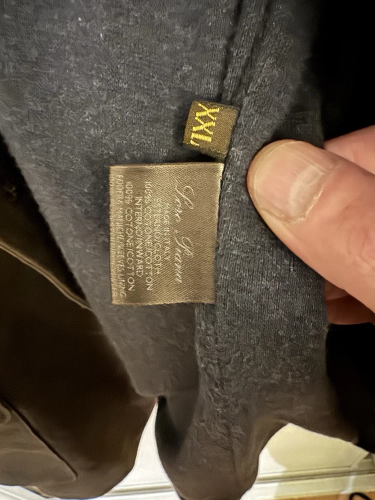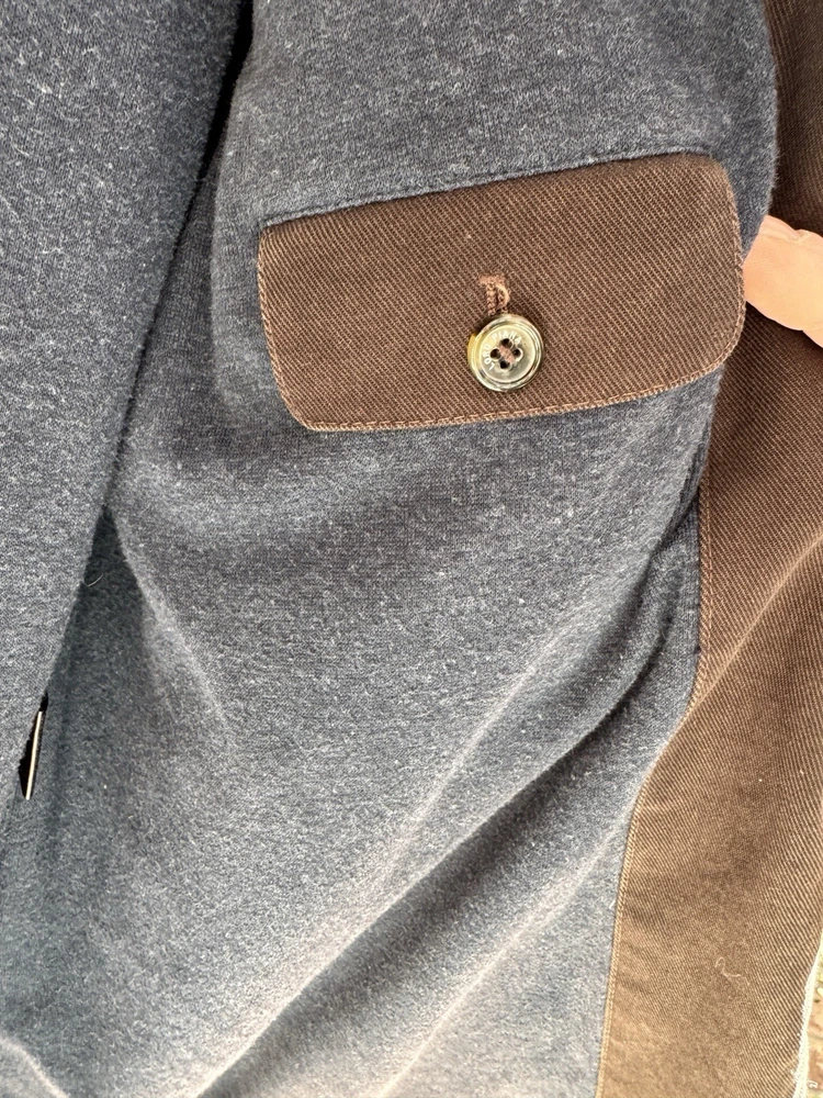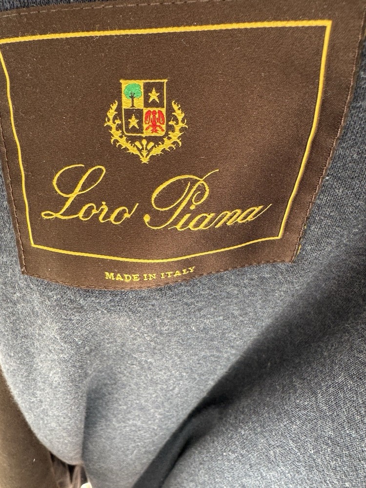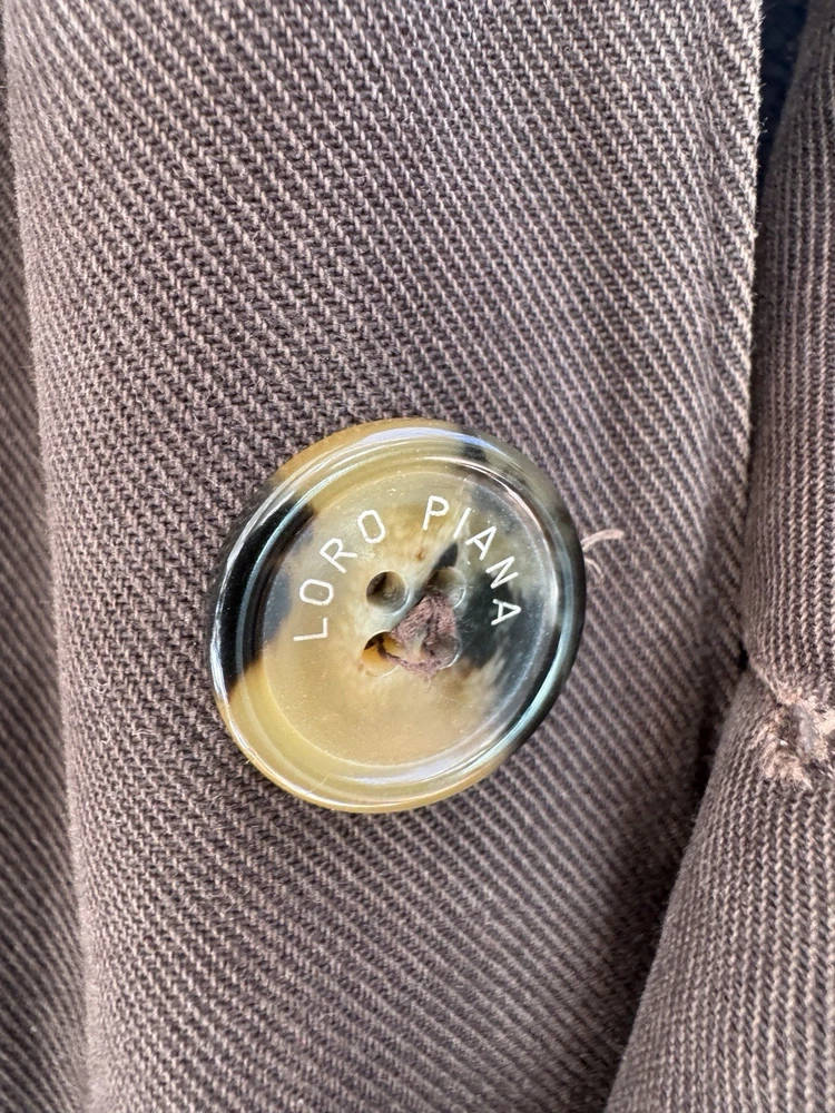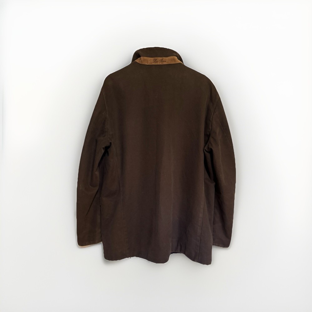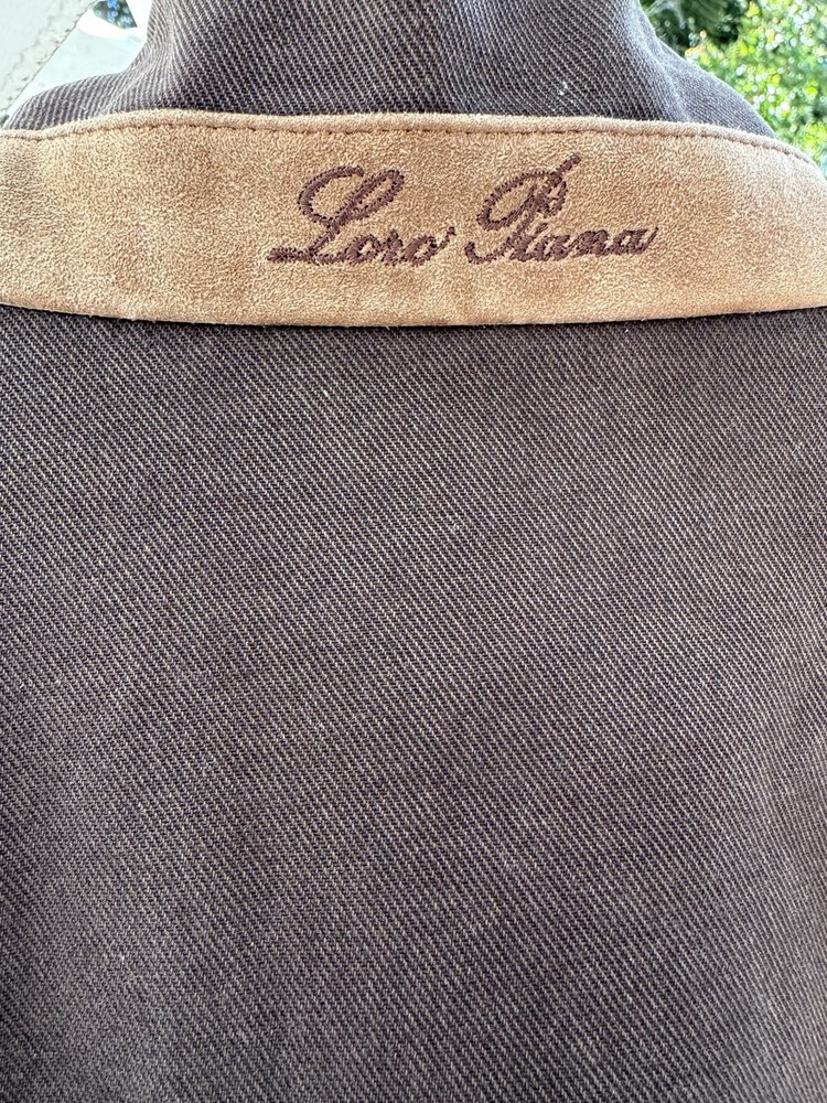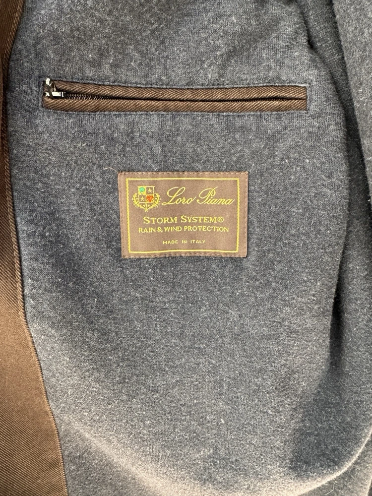 An incredible example of Italian "Quiet Luxury." This field jacket features Loro Piana’s patented Storm System technology, making the premium cotton shell wind and water-resistant while remaining breathable. This piece is loaded with high-end details, including genuine suede trim under the collar and lining the pockets, and beautiful engraved horn buttons. The interior is a soft, comfortable cotton, making it the perfect multi-season layer. Condition: Excellent pre-owned condition with a beautiful natural patina to the cotton. No major flaws, stains, or tears. All original hardware is present and functional. Approximate Measurements (Flat Lay): • Pit to Pit: 26 inches • Length: 29 inches • Shoulder to Shoulder: 20 inches • Sleeve Length: 25 inches Shipping: Fast, insured shipping. Please reach out with any questions!