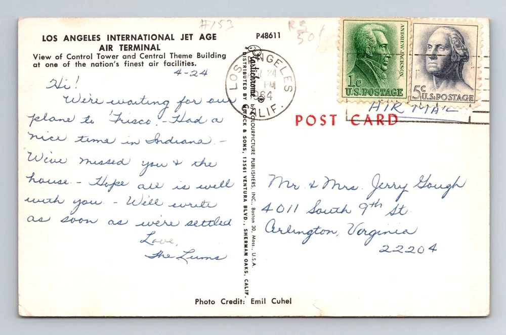 Los Angeles CA-California Control Tower Intl Air Terminal c1964 Vintage Postcard