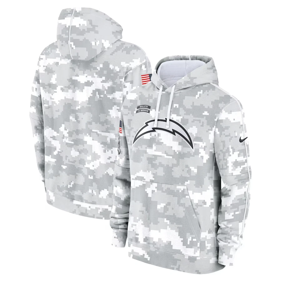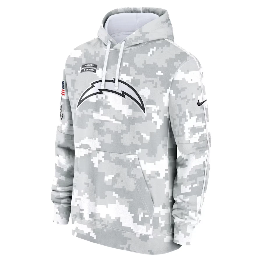 Los Angeles Chargers 2024 Salute Service Club Fleece Pullover Hoodie Arctic Camo