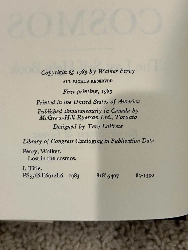Lost In The Cosmos By Walker Percy First Edition Hardcover w/ dust jacket This is in pretty good shape with slight signs of age. See photos and reach out with any questions.