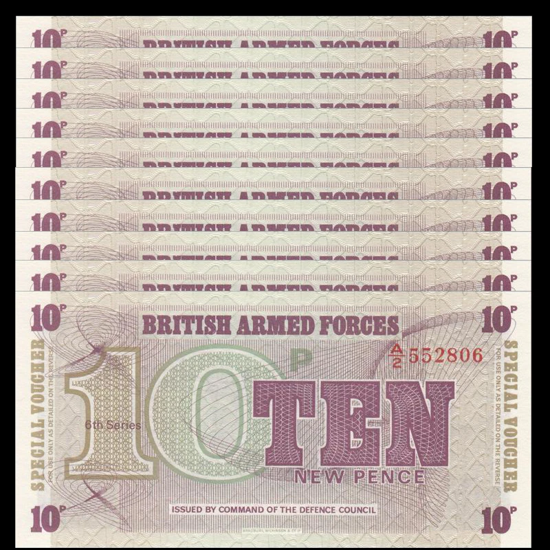 Lot 10 PCS, UK Great Britain 10 Pence Military Currency, ND, 6rd, P-M48, UNC About US ------------------------------------ We are the biggest seller of real banknotes and coins in China started in 2008. We don't make copies.None copies in our store. About Notes & Coins ------------------------------------ The actual note may have a different serial number,signaturs and prefixs.Please use the image as a reference only. The notes and coins we sell are 100% real and UNC We can combine shipping for some items. We can provide Serial Number for lots notes. 100% Satisfaction Guranteed shipping ------------------------------------ we ship the item via USPS to USA ( 10-15 days for shipping), Via china-post to world( 10-30 days for shipping). Some remote area maybe take a little longer, Please be patient. we will ship out in 48 Hours after the payment is cleared. Feedback ------------------------------------ If there is a problem, contact us in advance, please don't leave negative/neutral feedback without communication. We'd appreciate the opportunity to work with you to ensure a successful transaction. Please feel free to E-mail us with any questions,We will respond in 24 hours . On Nov-13-16 at 22:17:40 PST, seller added the following information: On Sep-17-19 at 23:24:40 PDT, seller added the following information: On Sep-20-20 at 02:24:06 PDT, seller added the following information: