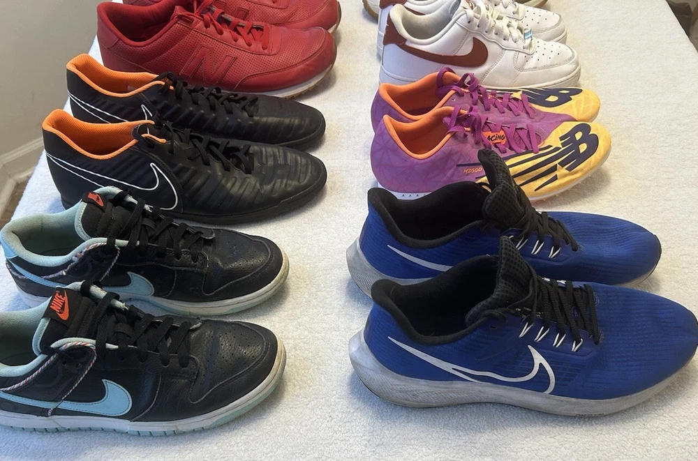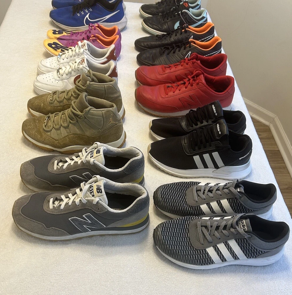 Lot 10 Pairs Of Athletic Shoes Bulk Wholesale Reseller Hoka Brooks Nike Saucony Reebok Adidas Jordan Mixed Sizes The shoes pictured in this listing are an example of some of the lots available. An order placed will not include this specific mix of men’s shoes. All Shoes in Great Condition with Ample Margin For Resale Free Shipping
