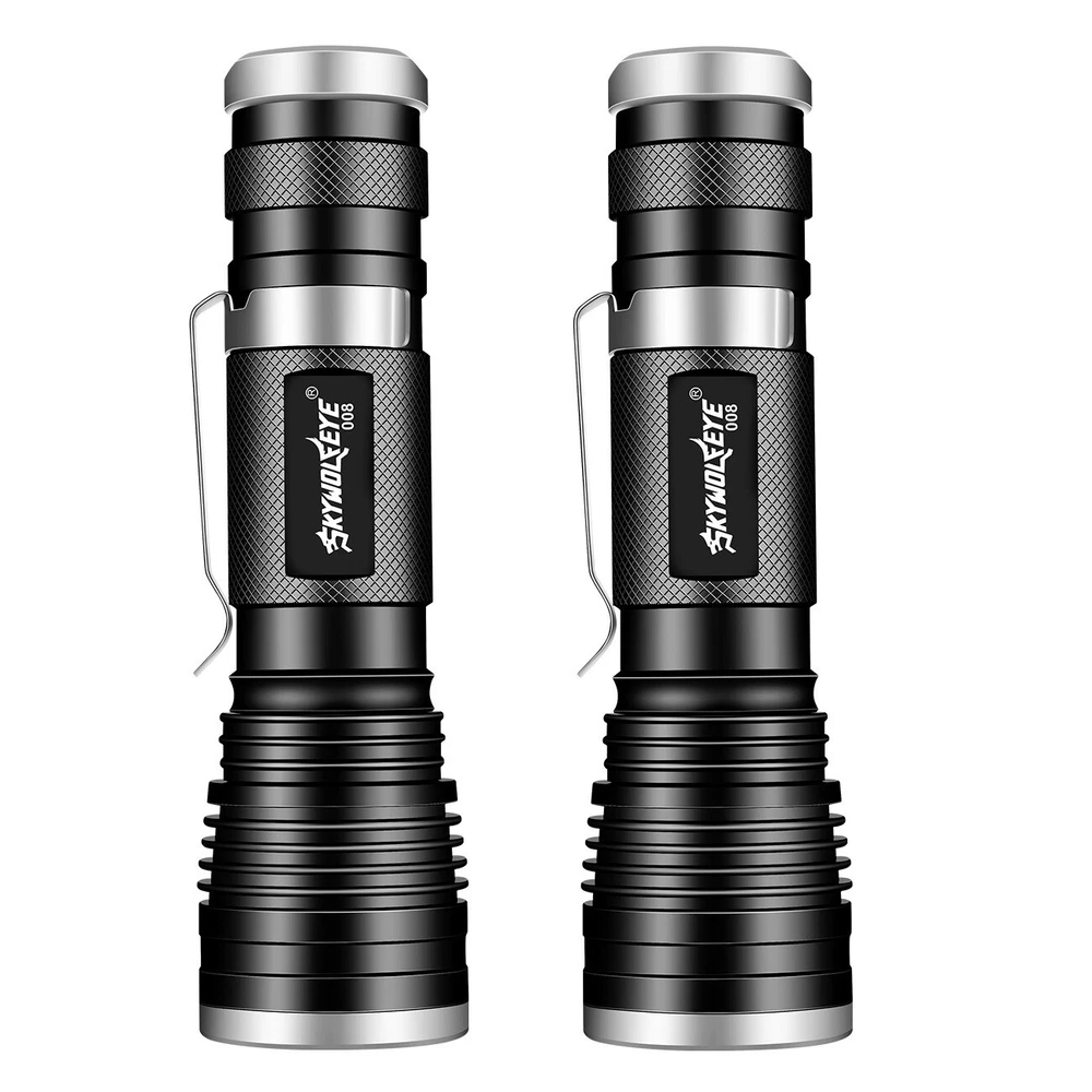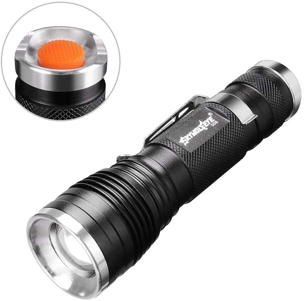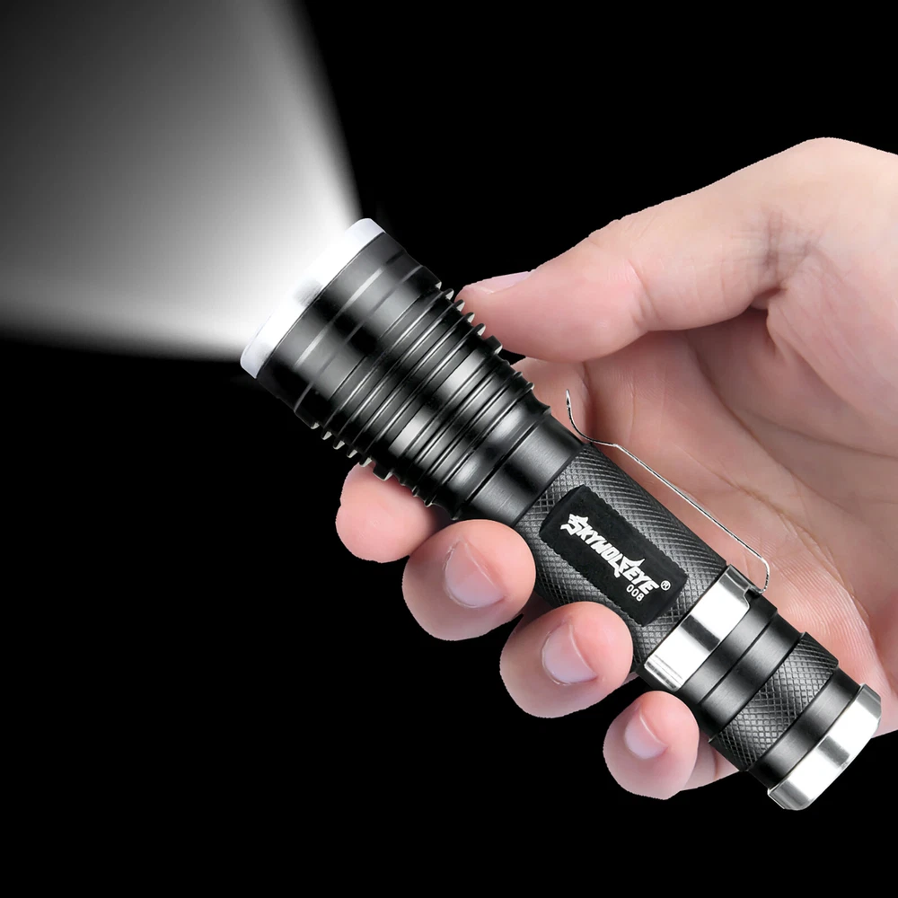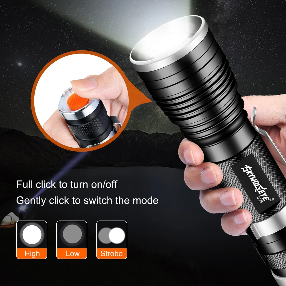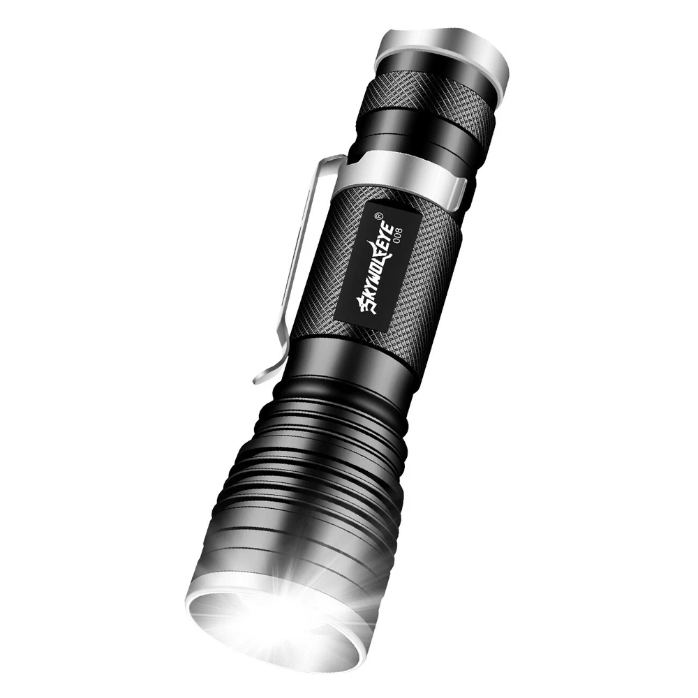 Number of LEDs: 1 Power Source: 1x 3.7v Lithium Rechargeable Battery(Not Included) Battery Included: No Features: Clip On, Handheld, Rechargeable, Waterproof, Super Bright Zoomable LED Flashlight, Super Bright LED Flashlight, Flashlight High Lumens Super Bright Waterproof, LED Mini Flashlight Super Bright, Mini LED Flashlight Portable Work Light Type: Flashlight Model: Super Bright LED Flashlight Custom Bundle: No Voltage: 3.7V Color: Bronze Item Length: 4.45 inch Item Height: 0.94 inch Brand: Sky Wolf Eye Number of Batteries: 0 Material: Aluminum Lighting Technology: LED MPN: Does Not Apply Item Width: 1.26 inch Number of Lights: 1-3 Country/Region of Manufacture: China IP Rating: IP50 Operating Time: 1-5 Hours Item Weight: 4.0 ounce